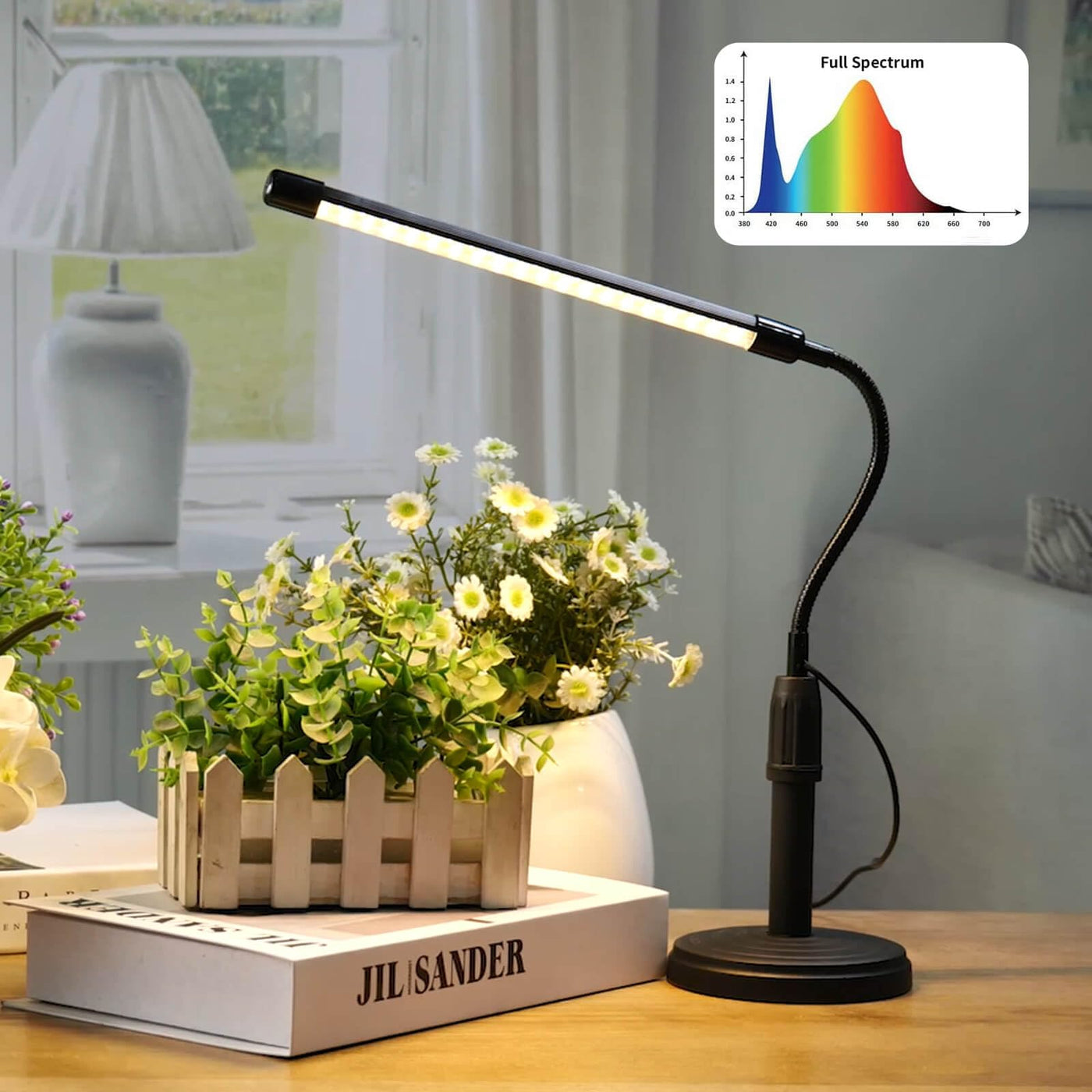 Q: What types of plants can benefit from the Desk Grow Lights?A: The Desk Grow Lights are designed for a variety of indoor plants including flowers, herbs, peppermint, succulents, and even seed starting. They provide a full spectrum of light that mimics natural daylight, making them suitable for various plant types.