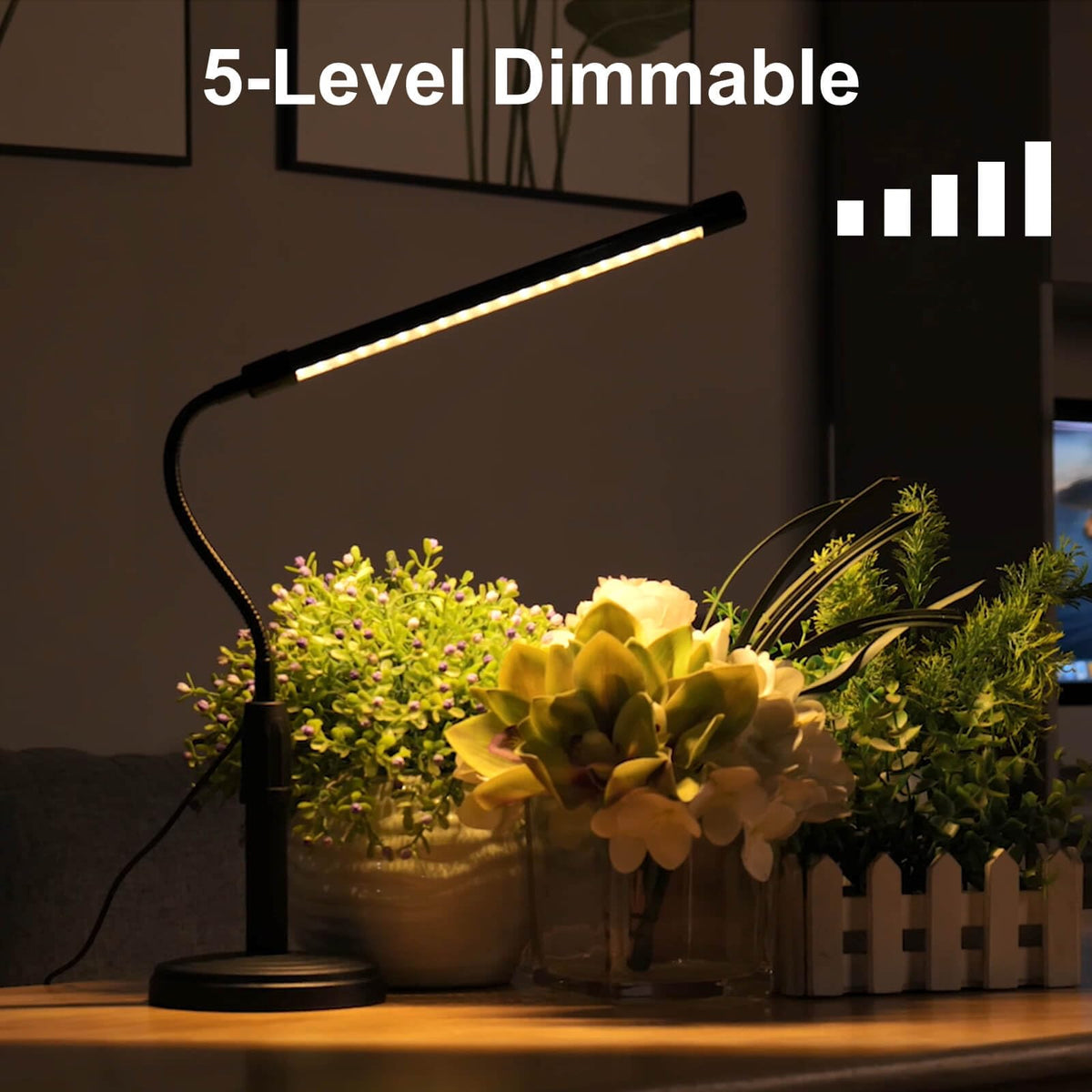 Desk Grow Lights For Indoor Plants Full Spectrum Table Top Grow Light Growth Lamp With Automatic Timer 5 Dimmable Levels, Height Adjustable 13"-18" (Without Usb Plug)
