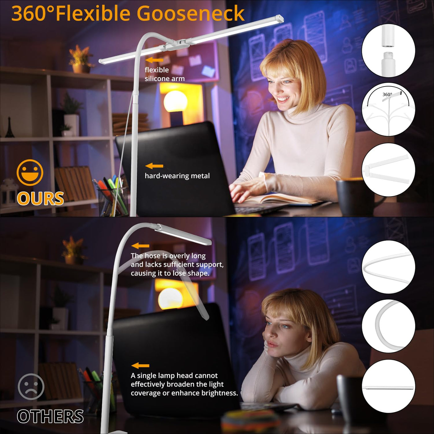 Desk Lamp with Clamp, with 5V 2A Adapter, LED Desk Lamp with Dual Head, 50 Light Modes, Computer Monitor Flexible Gooseneck Lamp