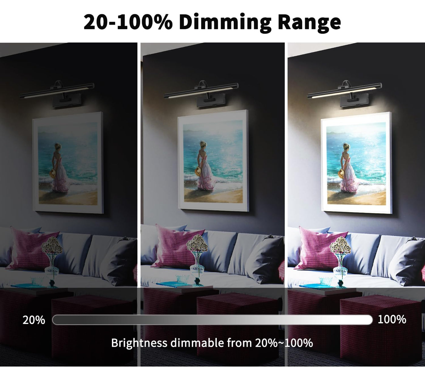 Q: How does the dimmable function work on the DESOOP Picture Light?A: The DESOOP Picture Light features a dimmable function that allows you to adjust the brightness according to your preference. You can easily control this feature using the included remote, which enables you to set the light to your desired intensity for optimal artwork display.