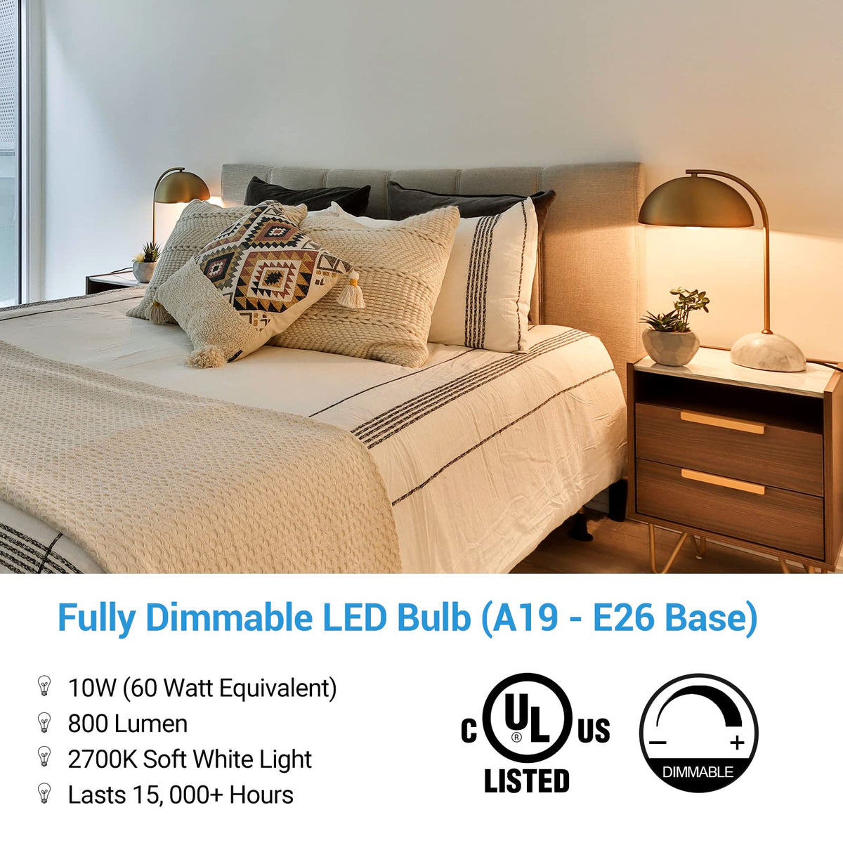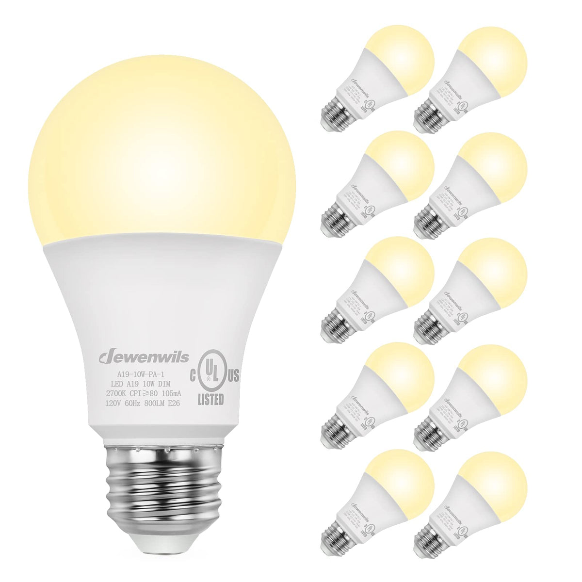 Dewenwils 10-Pack Dimmable Led A19 Light Bulb, Soft White Light With Warm Glow, 800 Lumen, 2700K, 10W (60 Watt Equivalent), E26