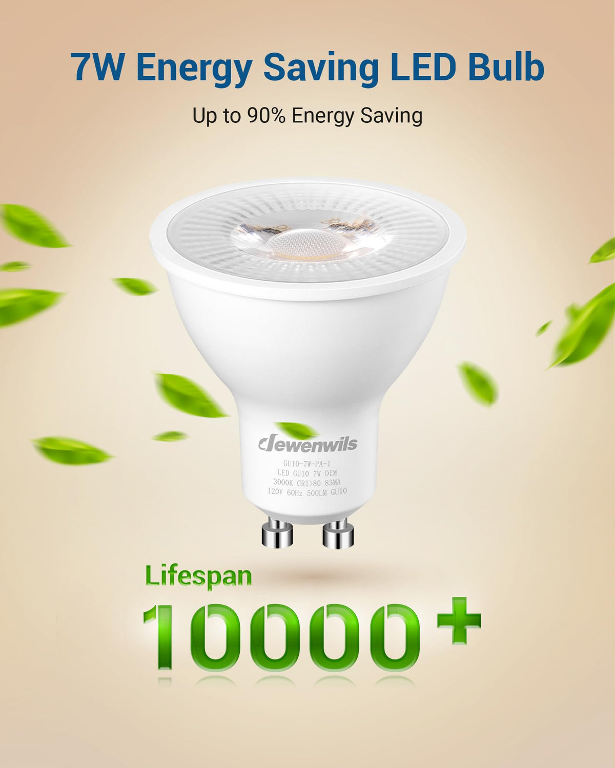 Dewenwils 10-Pack Gu10 Led Bulb Dimmable, 3000K Warm White Gu10 Bulb Replacement For Track Lighting, 500Lm, 7W(50W Equivalent) Led Light Bulb For Kitchen, Range Hood, Living Room, Bedroom, Ul Listed