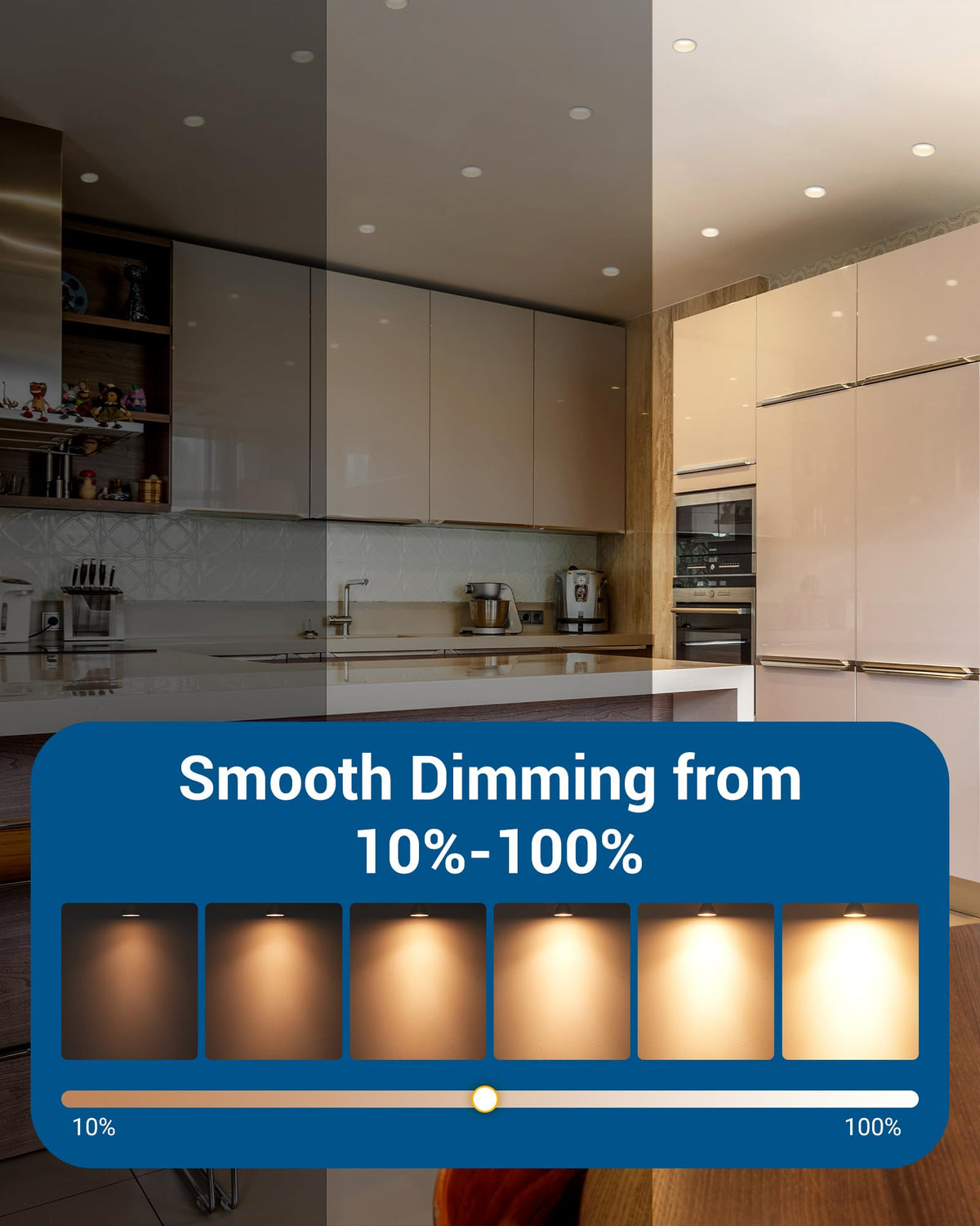 Q: Are the DEWENWILS GU10 bulbs dimmable?A: Yes, the DEWENWILS GU10 LED bulbs feature stepless dimming capabilities, allowing you to adjust the brightness from 10% to 100% to meet your specific lighting needs.