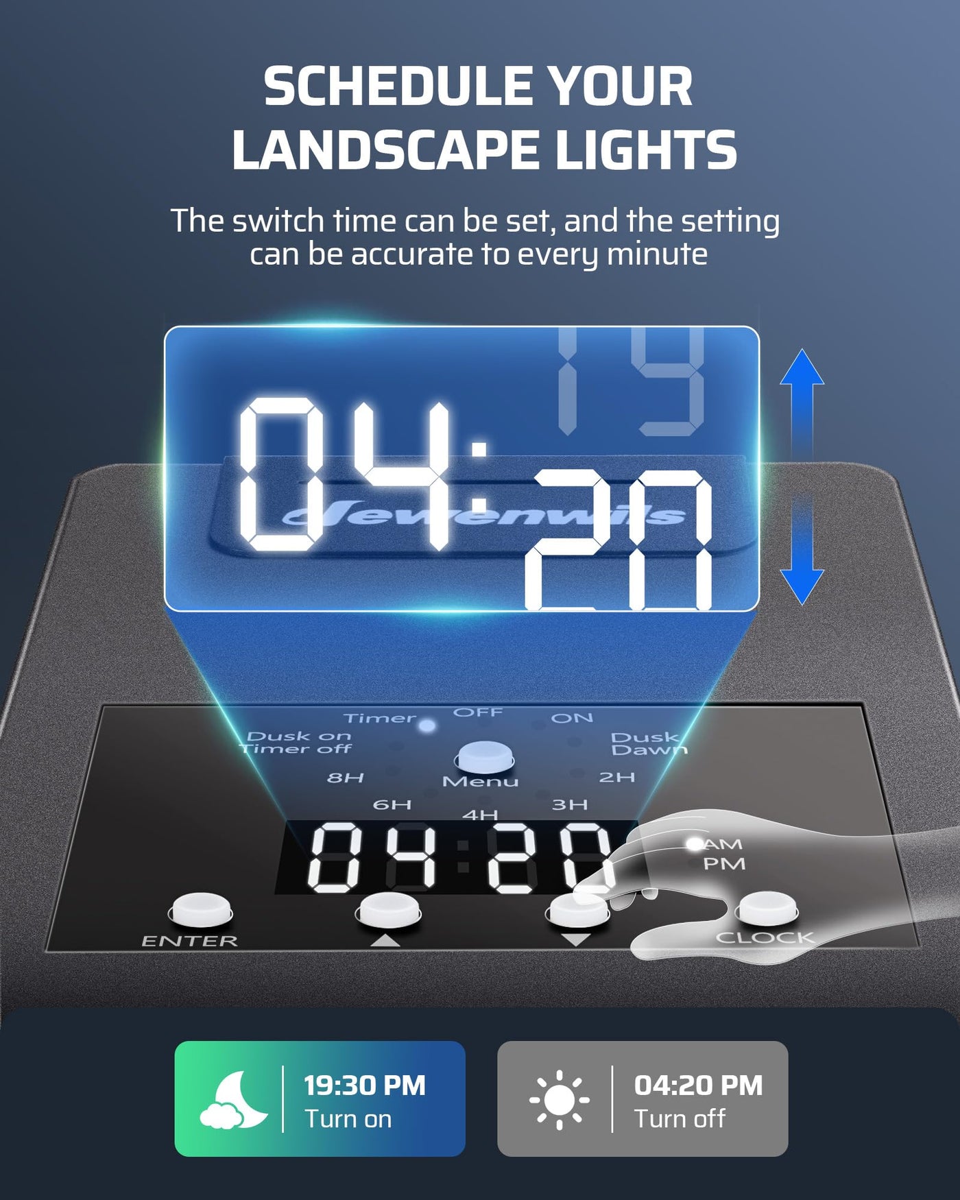Dewenwils 120V Ac To 12V Dc Low Voltage Landscape Transformer With Photocell Sensor & Timer The Landscape Lighting Transformers Come With Features Like Automatic Dusk-To-Dawn Operation, And A Timer, And They Work Well With All Types Of Low-Voltage Lighting Setups. Built Using Strong Pc Housing And A Completely Sealed Design, This High-Quality Transformer Is Designed To Handle Outdoor Conditions Effectively. It'S Resistant To Moisture, Weather, And Corrosion, Ensuring It Remains Reliable Even After Years Of Continuous Use.