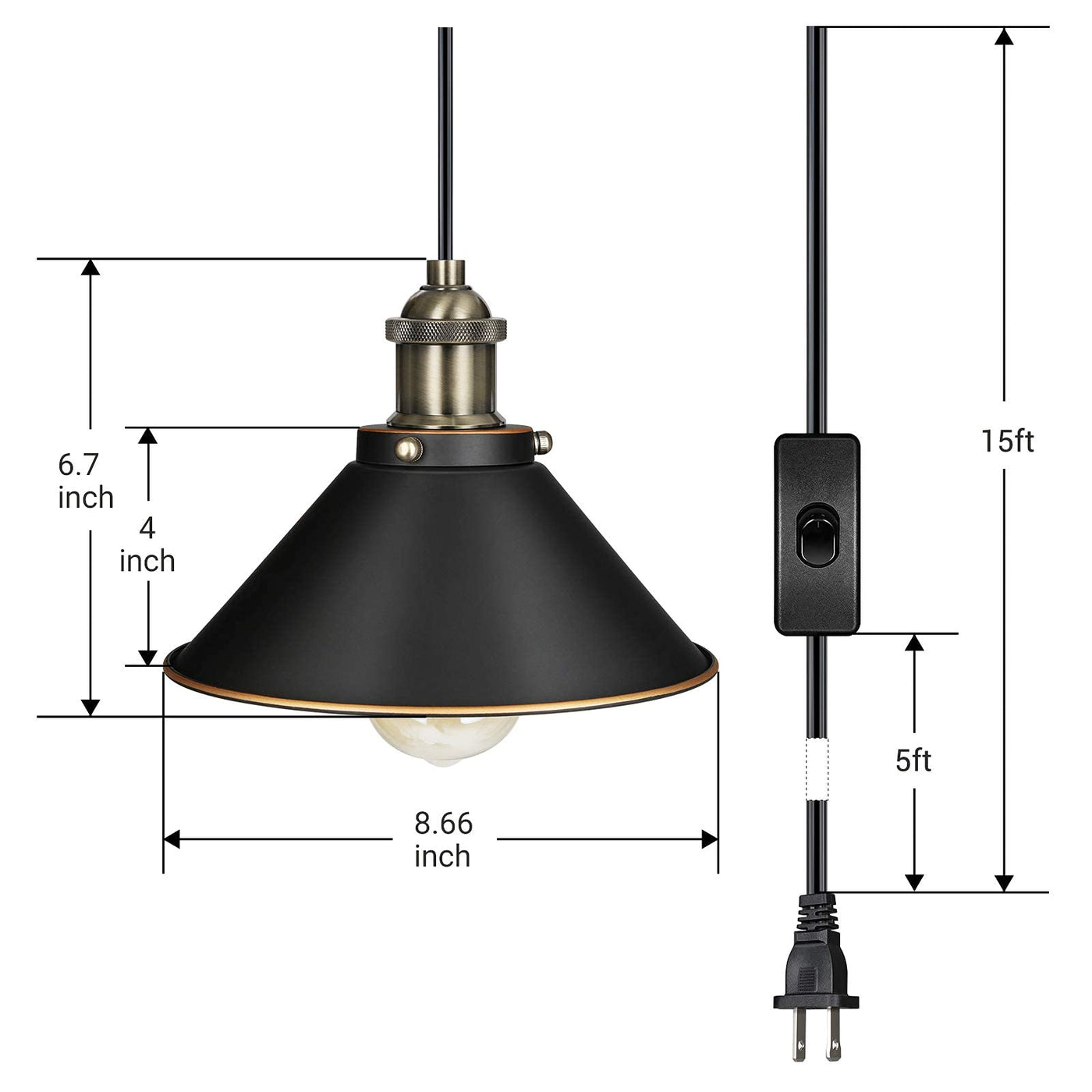 DEWENWILS 2-Pack Plug in Pendant Light, Farmhouse Hanging Lamp, Industrial Hanging Light with 15FT Cord, Black Retro Pure Copper