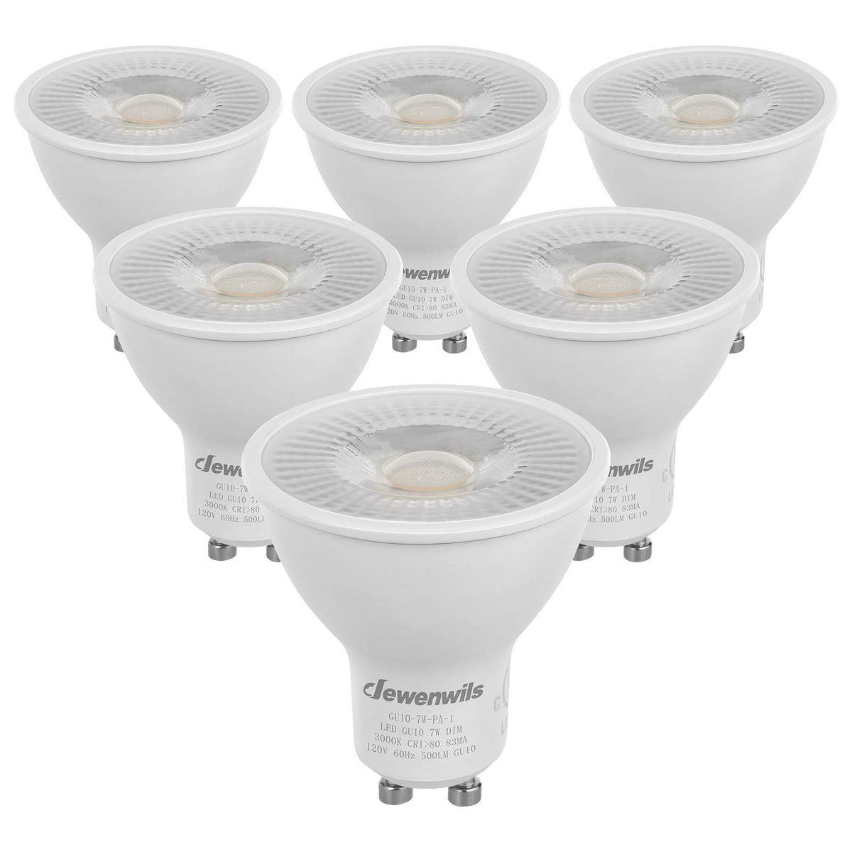 Dewenwils 6-Pack Gu10 Led Bulb Dimmable, 3000K Warm White Gu10 Bulb Replacement For Track Lighting, 500Lm, 7W(50W Equivalent) Led Light Bulb For Kitchen, Range Hood, Living Room, Bedroom, Ul Listed