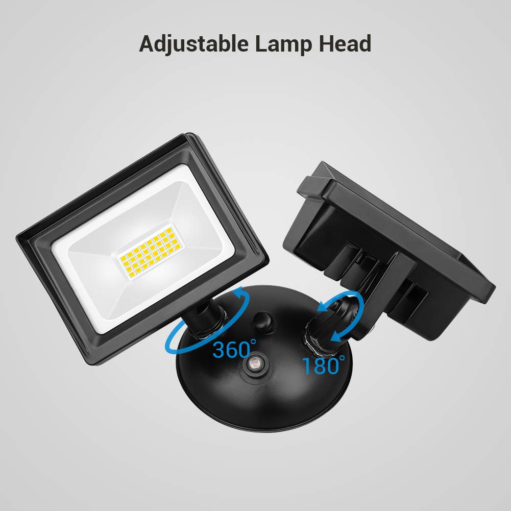 Q: Can the heads of the DEWENWILS flood light be adjusted for better coverage?A: Yes, the flood light features two adjustable lamp heads that can be angled independently to direct light where it's needed most. This flexibility allows you to customize the lighting coverage for different areas, enhancing security and visibility.