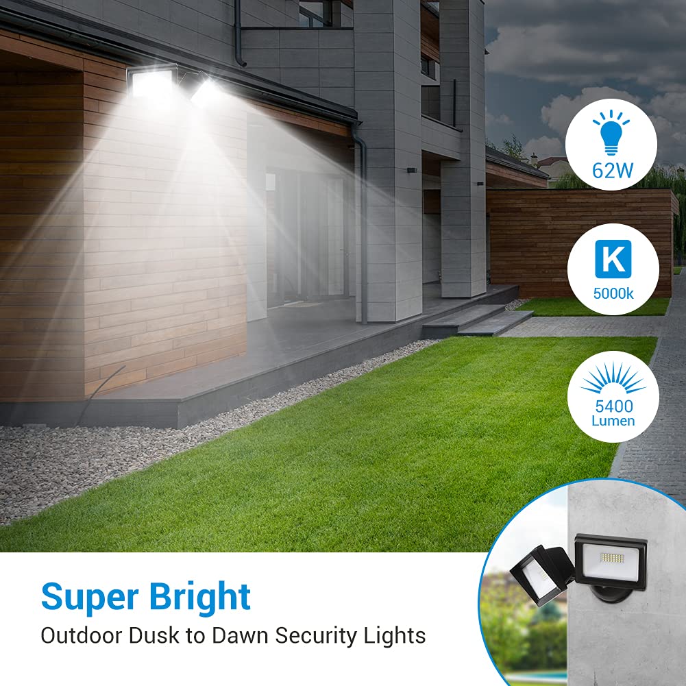 Dewenwils 62W Dusk To Dawn Led Security Light, 5400Lm, Ip65 Waterproof, 2 Adjustable