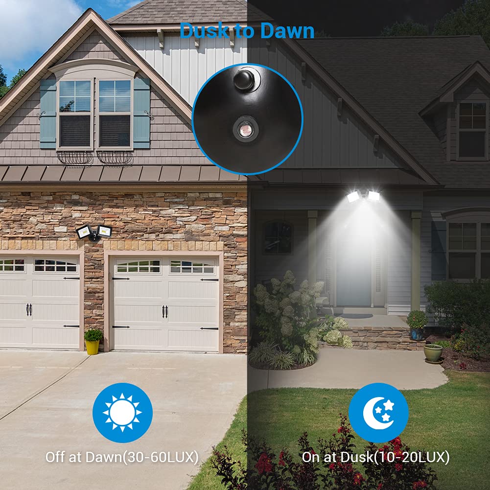 - **Dusk to Dawn Operation**: Equipped with a built-in dusk to dawn sensor, this flood light automatically activates at night when light levels drop below 10-20 Lux and turns off during the day at 30-60 Lux. Enjoy hassle-free operation without the need for manual switching.