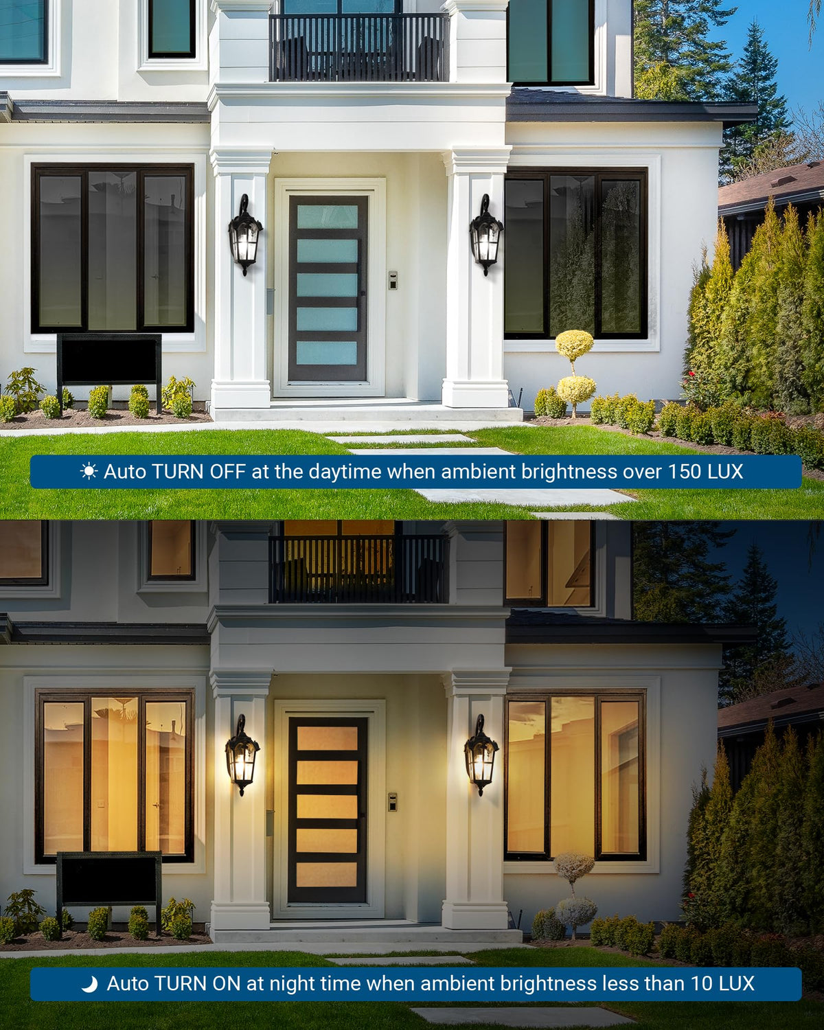 Automatic On/Off Functionality Equipped with a built-in dusk to dawn sensor, this wall light intelligently turns on at night and off during the day, ensuring your outdoor spaces are always illuminated when you need them.