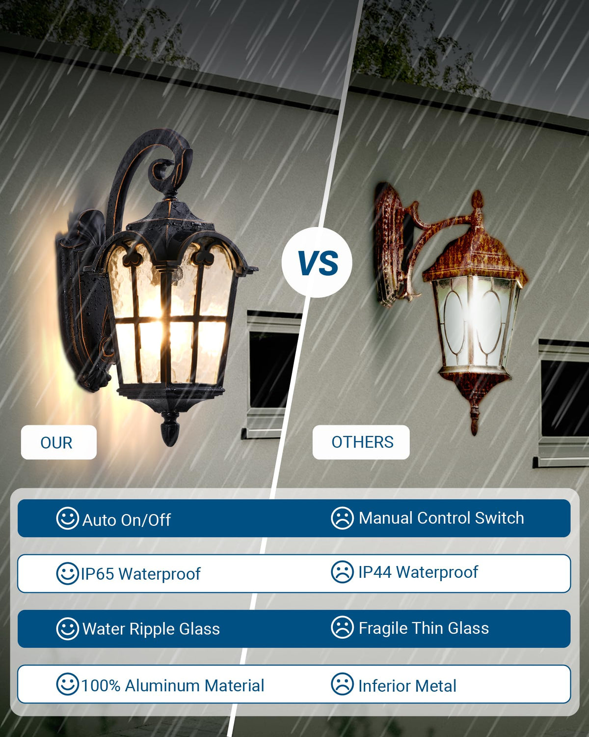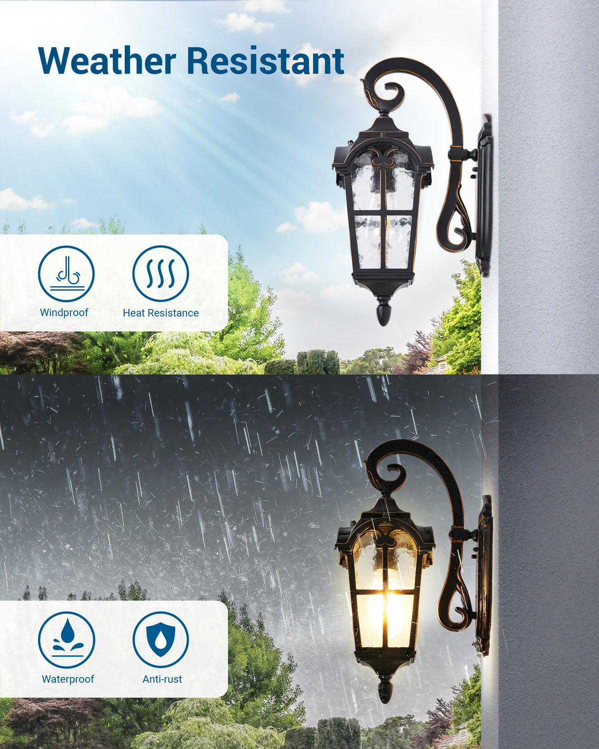 Durable and Weather Resistant Constructed from high-quality die-casting aluminum, this wall light is designed to withstand harsh weather conditions. Its anti-rust and corrosion-resistant properties guarantee longevity and reliability for years of use.