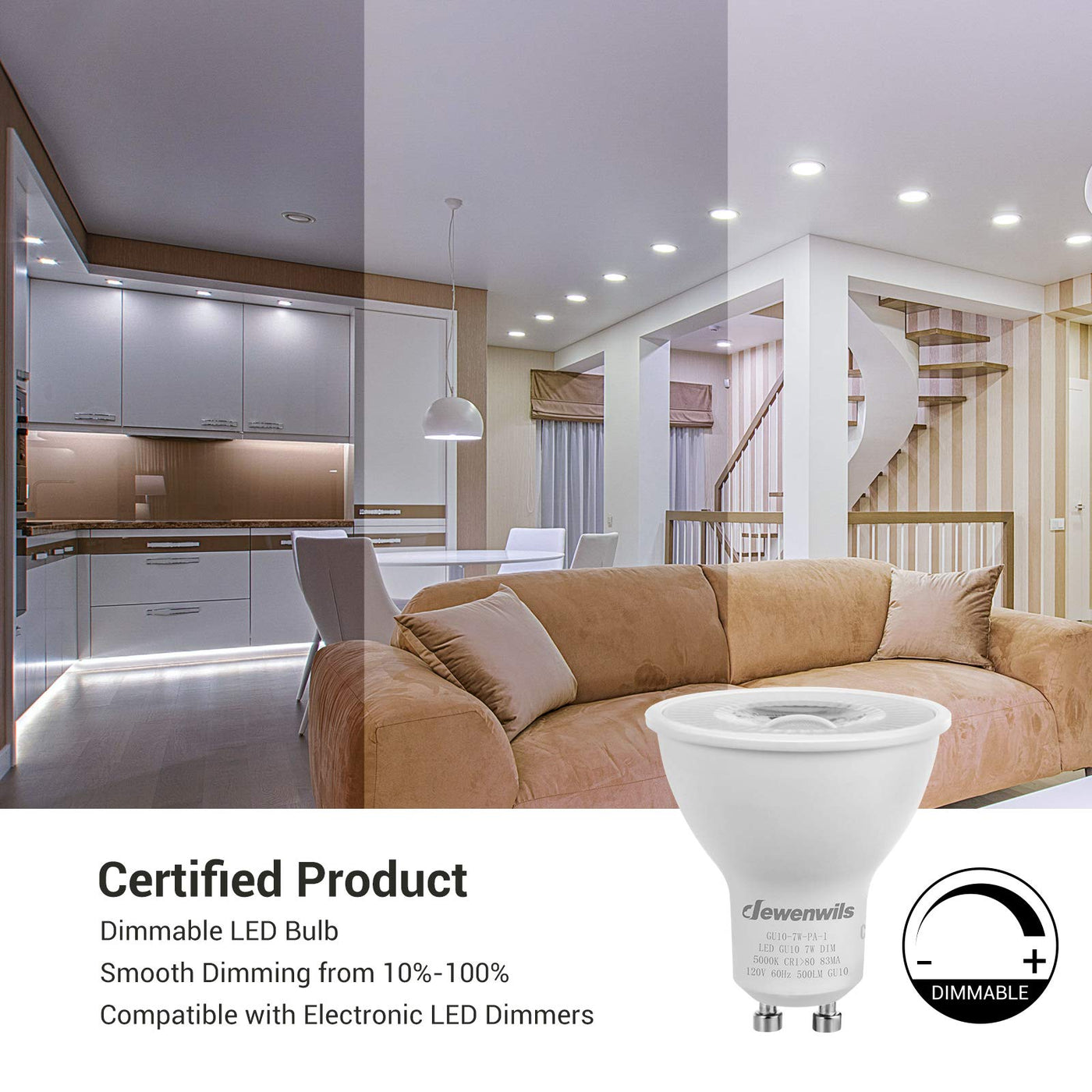 Dewenwils Gu10 Led Light Bulb, 500Lm, Dimmable 5000K Daylight Gu10 Bulb Replacement For Track Lighting, 7W(50W Equivalent) Led Bulbs For Living Room, Kitchen Range Hood, Bathroom, Ul Listed, 6 Pack