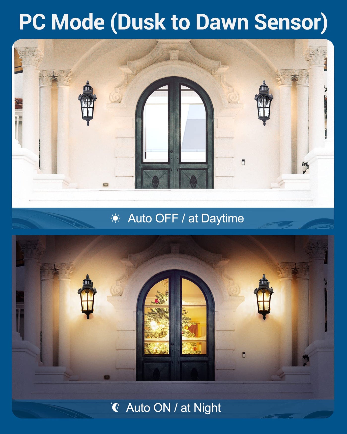 3. **PC Mode**: Automatically turns on at dusk and off at dawn, providing seamless lighting throughout the night.