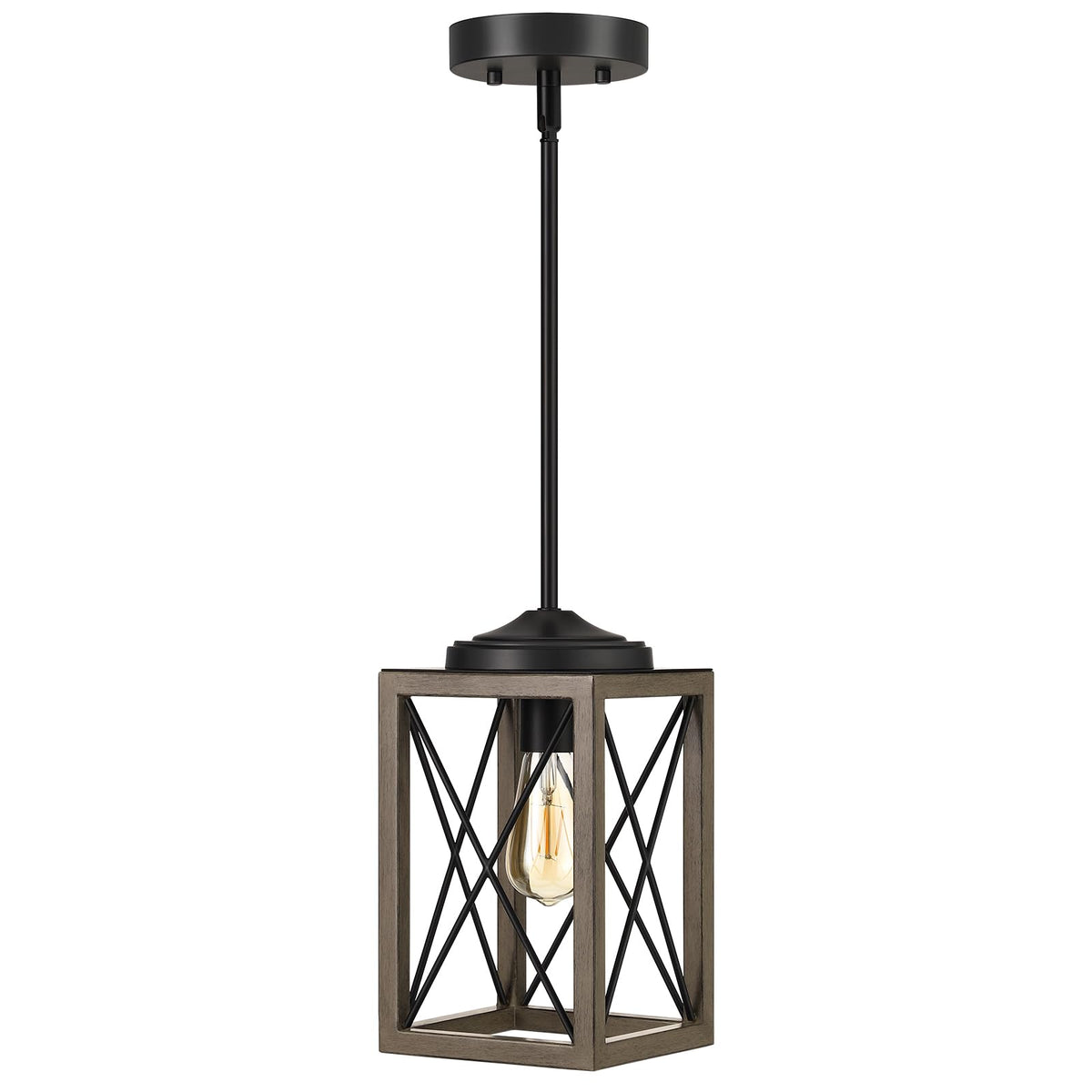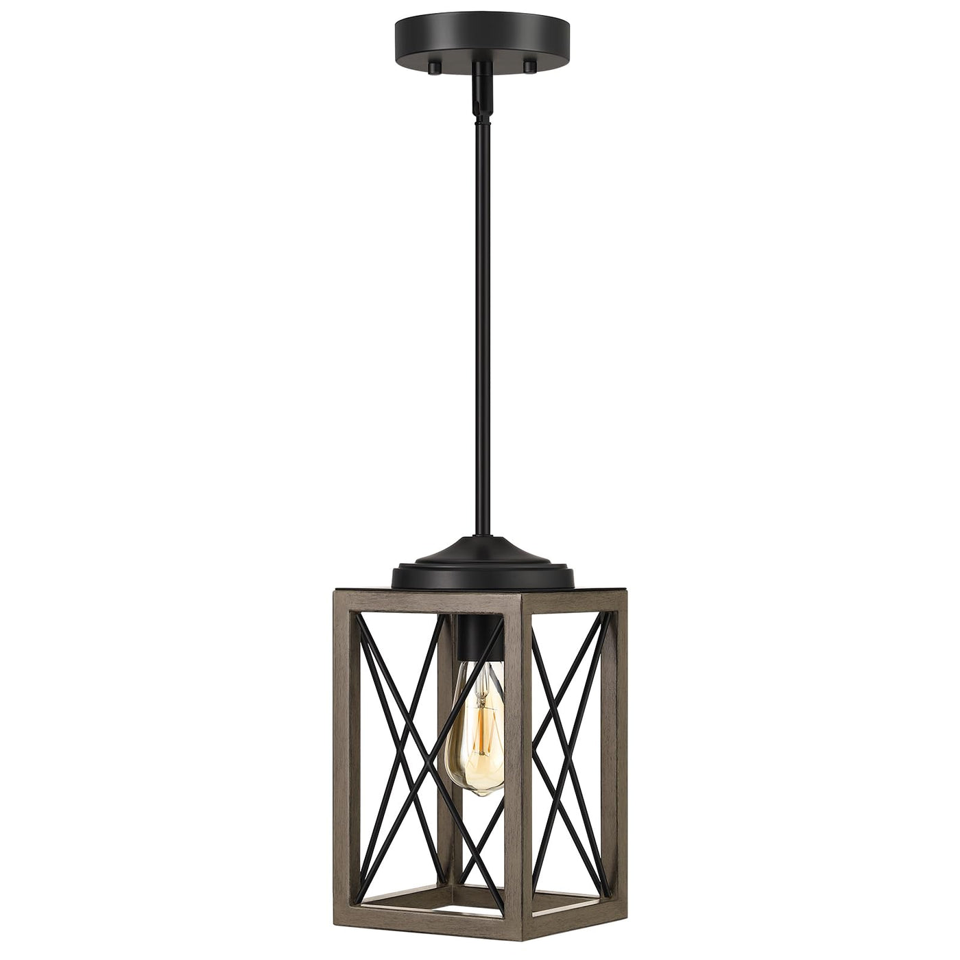 Dewenwils Pendant Light Fixtures, Metal Hanging Light Fixture With Wooden Grain Finish, 48 Inch Adjustable Pipes For Flat And Sl