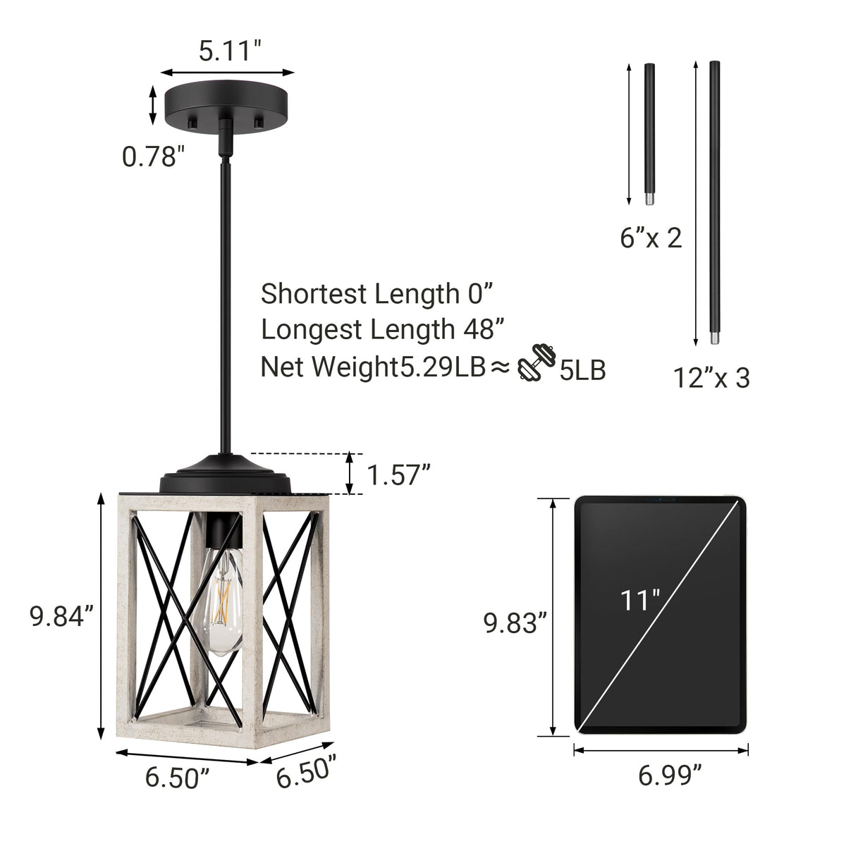 Dewenwils Pendant Light, Metal Pendant Light Fixtures With Wooden Grain Finish, 48'' Adjustable Pipes For Flat And Slop Ceiling,