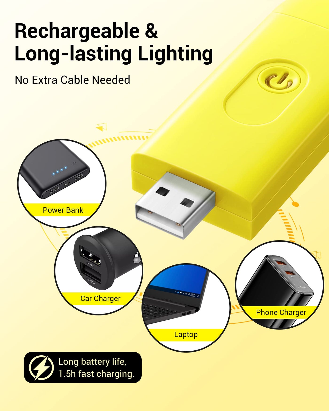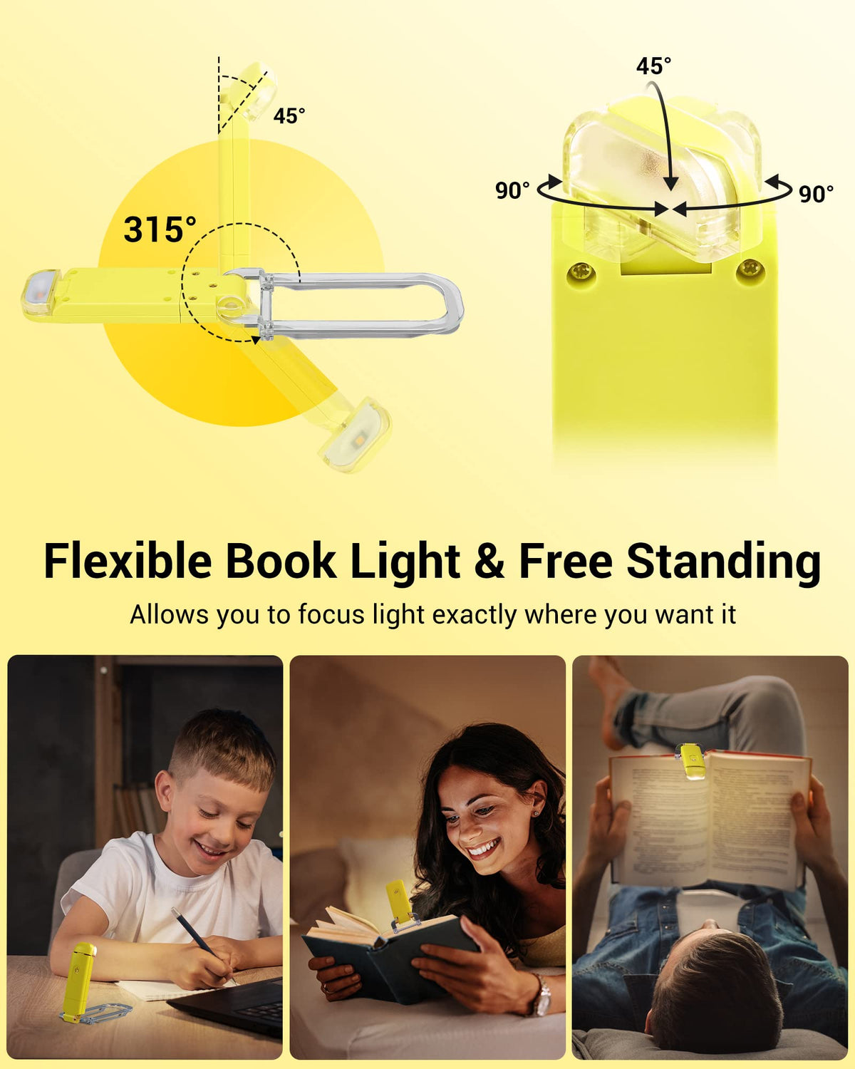 Novel Design This book light was designed with transparent holder and metal clip, elegant color and durable ABS material. 2 brightness settings with a switch button and multi-angle adjustment for optimum lighting angle; eye-protection and will not bother those around you; lightweight and portable for reading in bed or trips on the train or airplane; great gift for book lovers! Energy Efficient Built in 200mAh lithium rechargeable battery and universal USB interface, make charging more convenient. Simply plug the book light into the computer, power bank, wall outlet, adapter, car charger or other USB devices and no additional cable needed. It will last up to 8 hours on the high brightness setting, also 0.2W low consumption to save energy. Versatile You can just turn the book light off and fold it as bookmark and go to sleep without having to get out of bed to turn off the light, ideal for kids, bookworms. And it is perfect when the power outages, very handy to pick it up from your bedside and super practical. Free standing to be used as a desk lamp, and flexible angle adjustment lets it be used for many other uses. Specifications: - Lumens: 16LM - Color Temperature: 3000K - Wattage: 0.2W - Charging Time: 1.5 Hours - Working Time: Up to 8 Hours - Lifespan: 30000 Hours Packing List: - 1 x USB Book Light - 1 x User Manual Note: The power indicator shows blue when charging; it will turn off automatically when charging is finished. The LED lens can only be rotated 90? to the Anticlockwise. Forcibly rotating more than 90? will cause the light to be damaged and never illuminated.