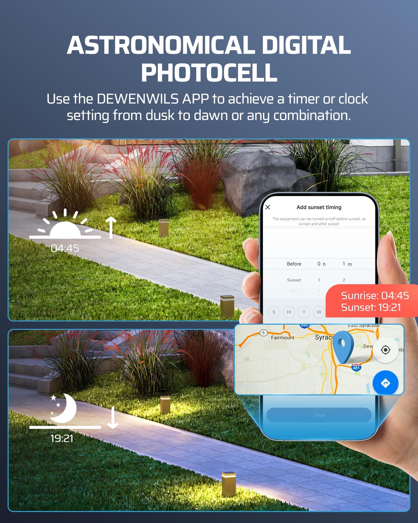 Smart Wireless Dewenwils 200-Watt Low Voltage Landscape Transformer Using Our Dewenwils App Allowing For Seamless Wifi Setup And Controllability Of Your Home'S Landscape Lighting System. Our Smart Transformer Has Three Independently Controlled Outputs Allowing To Setup Three Different Landscape Systems All Controlled With A Single Transformer. At 200-Watts It Can Be Used To Automate All Kinds Of Landscape Projects.Using Our Astronomic Virtual Photocell Function You Can Automatically Illuminate Your Trees And Shrubs With Our Bullet And Spot Lights During Sunset While Independently Controlling Your Path Lights To Turn On And Off Based On A Set Time Of Day While Using Our Dewenwils App To Manually Turn On And Off Deck Lights Or Porch Lights As Needed. Our Smart Transformer Truly Allows Your Home Landscape System To Be Fully Automated, Controlled By Our Dewenwils App Or Smart Life App On Your Mobile Handheld Device, Or By Using Your Preferred Voice-Controlled Systems Of Alexa Or Google Voice. Our Transformer Has All The Necessary Safety Features Required By Etl With Integrated Self-Protection Features. Our Dewenwils App Allows To Select Either A 12V Output For Closer Halogen Based Installations Or To Select A 14V Output For Either A Led Fixture Or For Longer Run Length Installations. Directly And Easily Connect Our Transformer Right To Your Home'S Router And To Mobile Device With A Single Press Of A Button. No Additional Hardware Or Accessories Needed, No Hub Required! Truly A Versatile Unit.