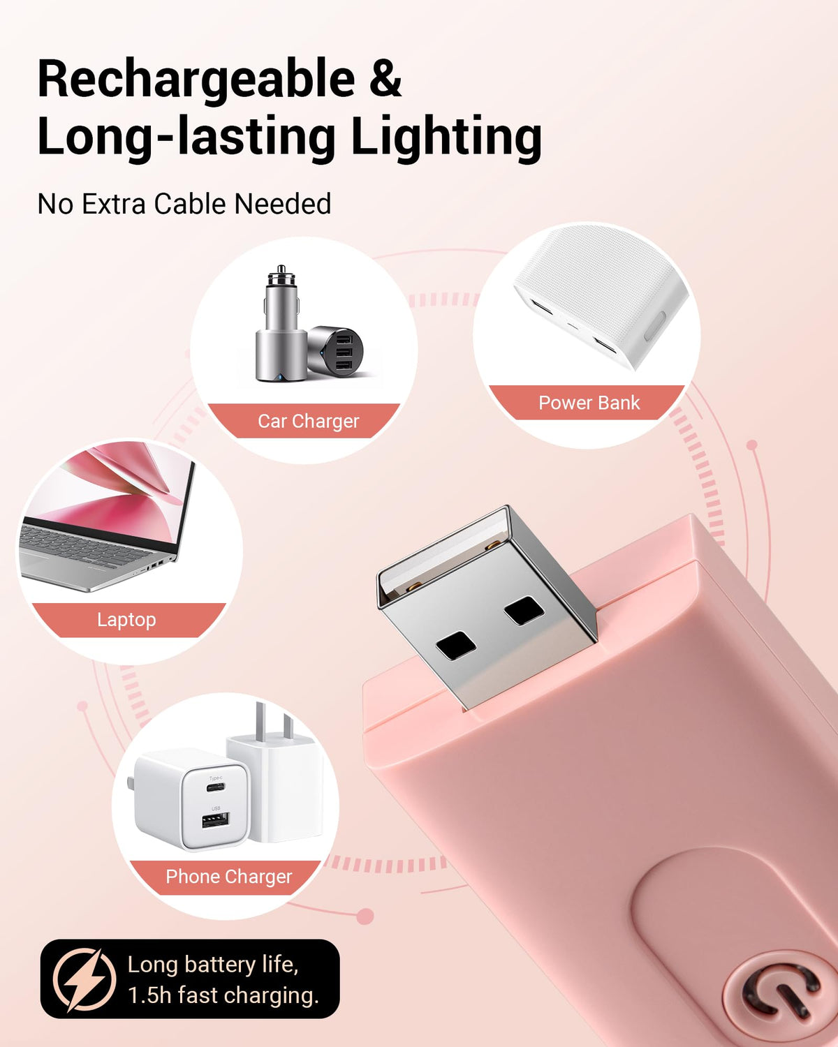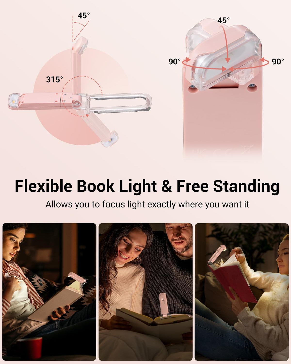 Novel Design This book light was designed with transparent holder and metal clip, elegant color and durable ABS material. 2 brightness settings with a switch button and multi-angle adjustment for optimum lighting angle; eye-protection and will not bother those around you; lightweight and portable for reading in bed or trips on the train or airplane; great gift for book lovers! Energy Efficient Built in 200mAh lithium rechargeable battery and universal USB interface, make charging more convenient. Simply plug the book light into the computer, power bank, wall outlet, adapter, car charger or other USB devices and no additional cable needed. It will last up to 8 hours on the high brightness setting, also 0.2W low consumption to save energy. Versatile You can just turn the book light off and fold it as bookmark and go to sleep without having to get out of bed to turn off the light, ideal for kids, bookworms. And it is perfect when the power outages, very handy to pick it up from your bedside and super practical. Free standing to be used as a desk lamp, and flexible angle adjustment lets it be used for many other uses. Specifications: - Lumens: 16LM - Color Temperature: 3000K - Wattage: 0.2W - Charging Time: 1.5 Hours - Working Time: Up to 8 Hours - Lifespan: 30000 Hours Packing List: - 1 x USB Book Light - 1 x User Manual Note: The power indicator shows blue when charging; it will turn off automatically when charging is finished. The LED lens can only be rotated 90 to the Anticlockwise. Forcibly rotating more than 90 will cause the light to be damaged and never illuminated.