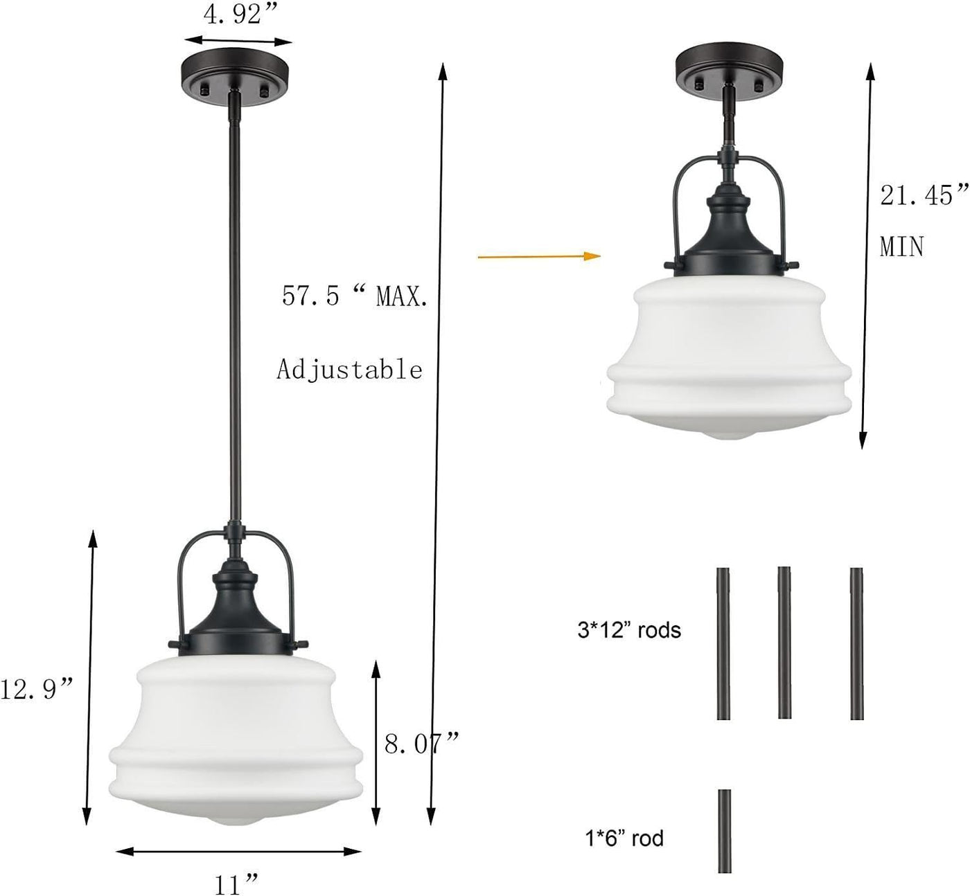 Deynite Industrial Pendant Light Fixtures Black Schoolhouse Hanging Adjustable Light For Kitchen Island