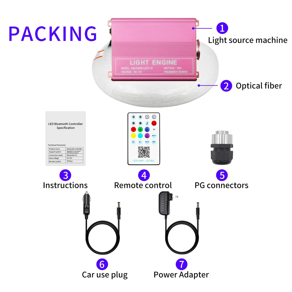 Diadcely 200 Piece Starlight Headliner Kit 16W RGBW Twinkle+ Music Effect + APP&Remote Control Dual Channel Control,0.03in/0.75mm*9.8ft/3m Fiber Optic Lights for Car Roof/Home Fiber Optic Star Ceiling