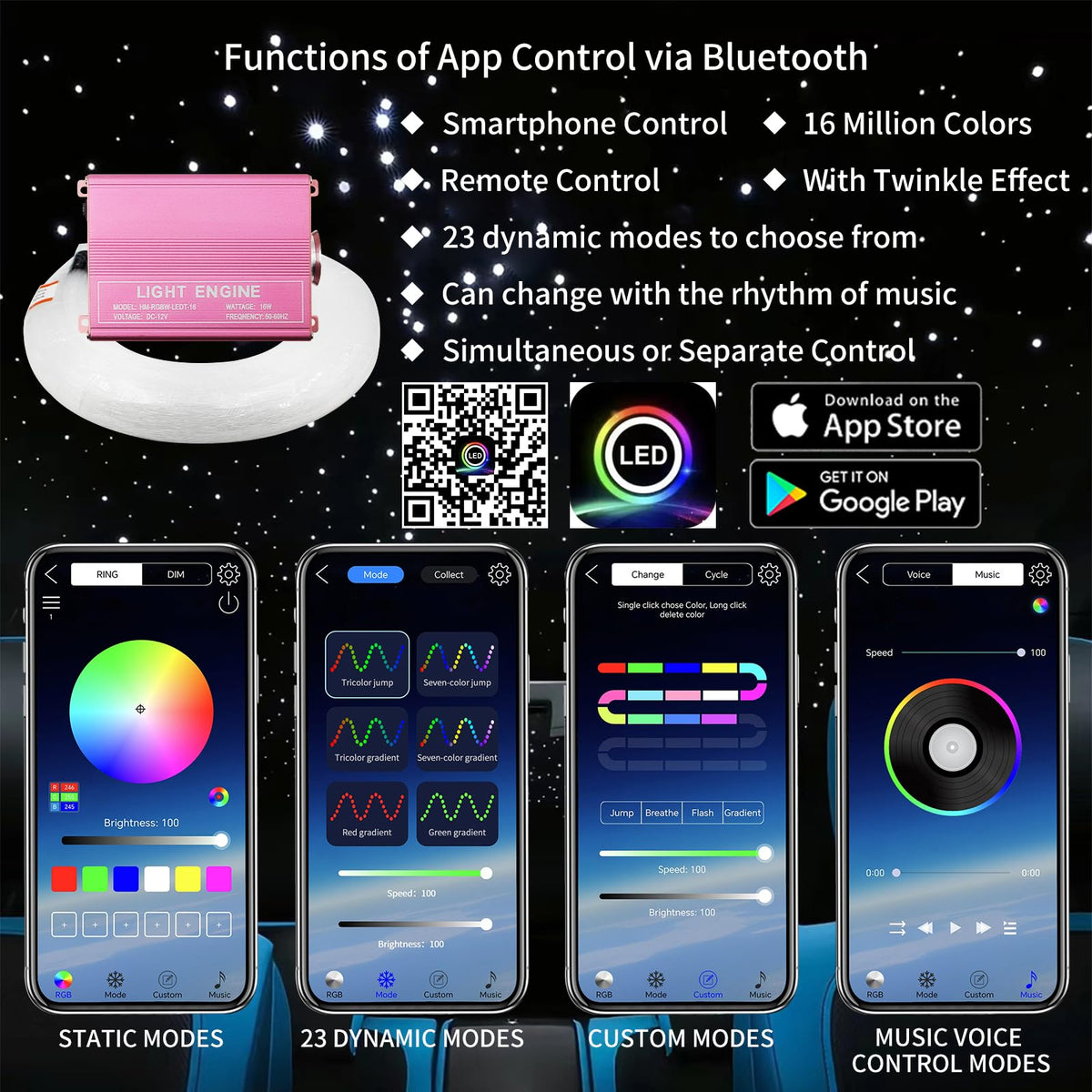Diadcely 200 Piece Starlight Headliner Kit 16W RGBW Twinkle+ Music Effect + APP&Remote Control Dual Channel Control,0.03in/0.75m