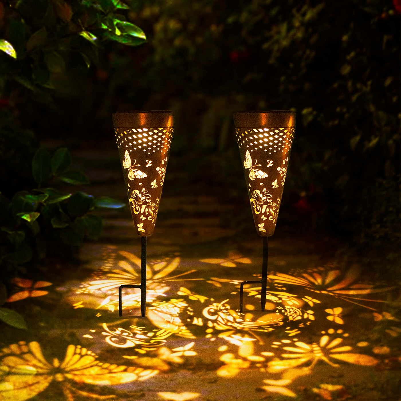 Dibieecn 4 Pack Butterfly Solar Garden Pathway Lights Outdoor,Metal Garden Decorations Outdoor Lights With Patterns And Warm Lig
