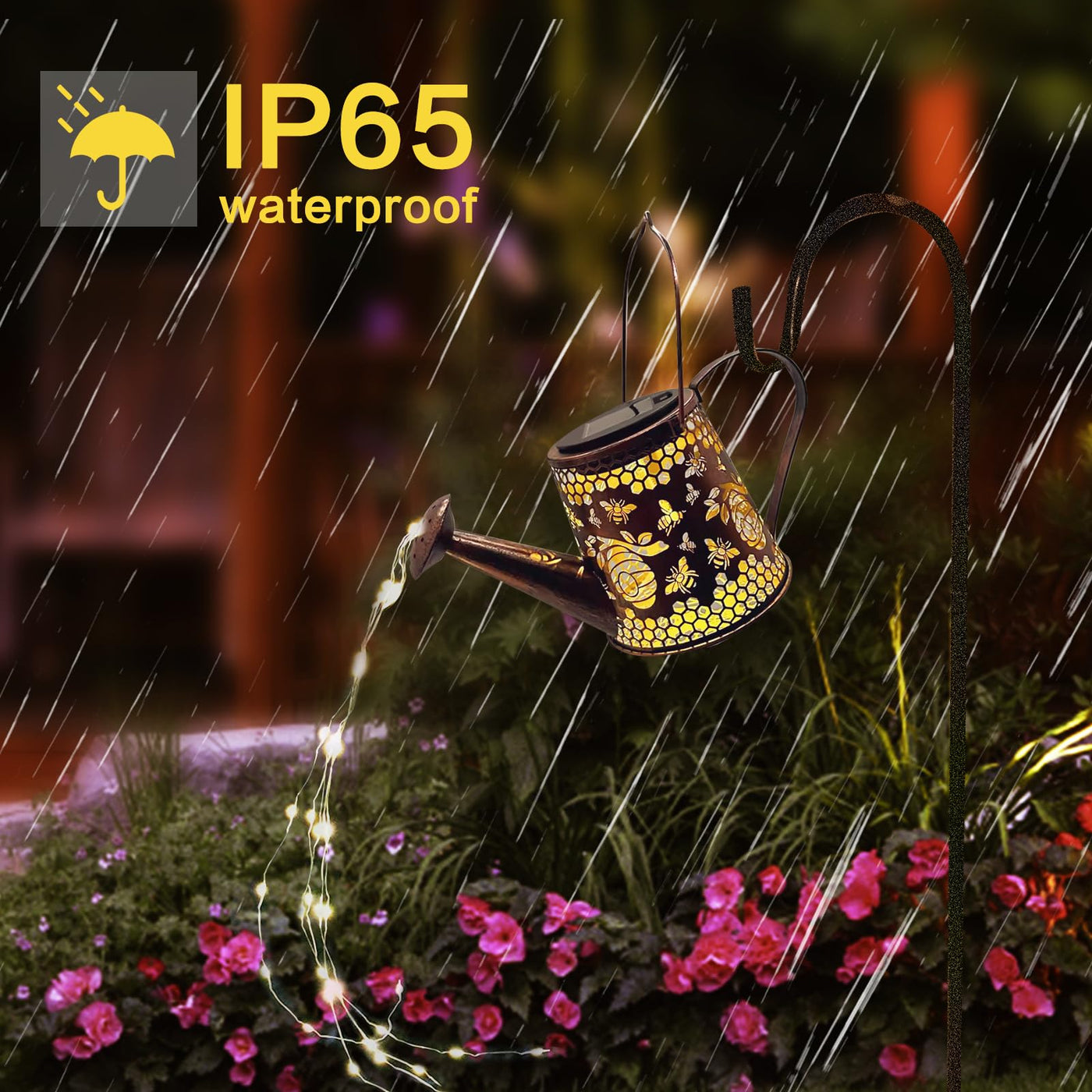 - **Durable and Weather-Resistant**: Crafted from high-quality metal materials, the solar watering can light is IP65 waterproof, rust-proof, heat-resistant, and frost-resistant, making it perfect for diverse outdoor weather conditions. The LED copper wire lights can be easily customized to your desired length without compromising their functionality.