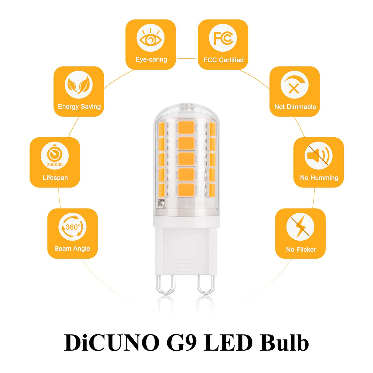 Dicuno G9 Led Bulbs 40W Equivalent, Warm White 3000K, 400Lm, Non-Dimmable