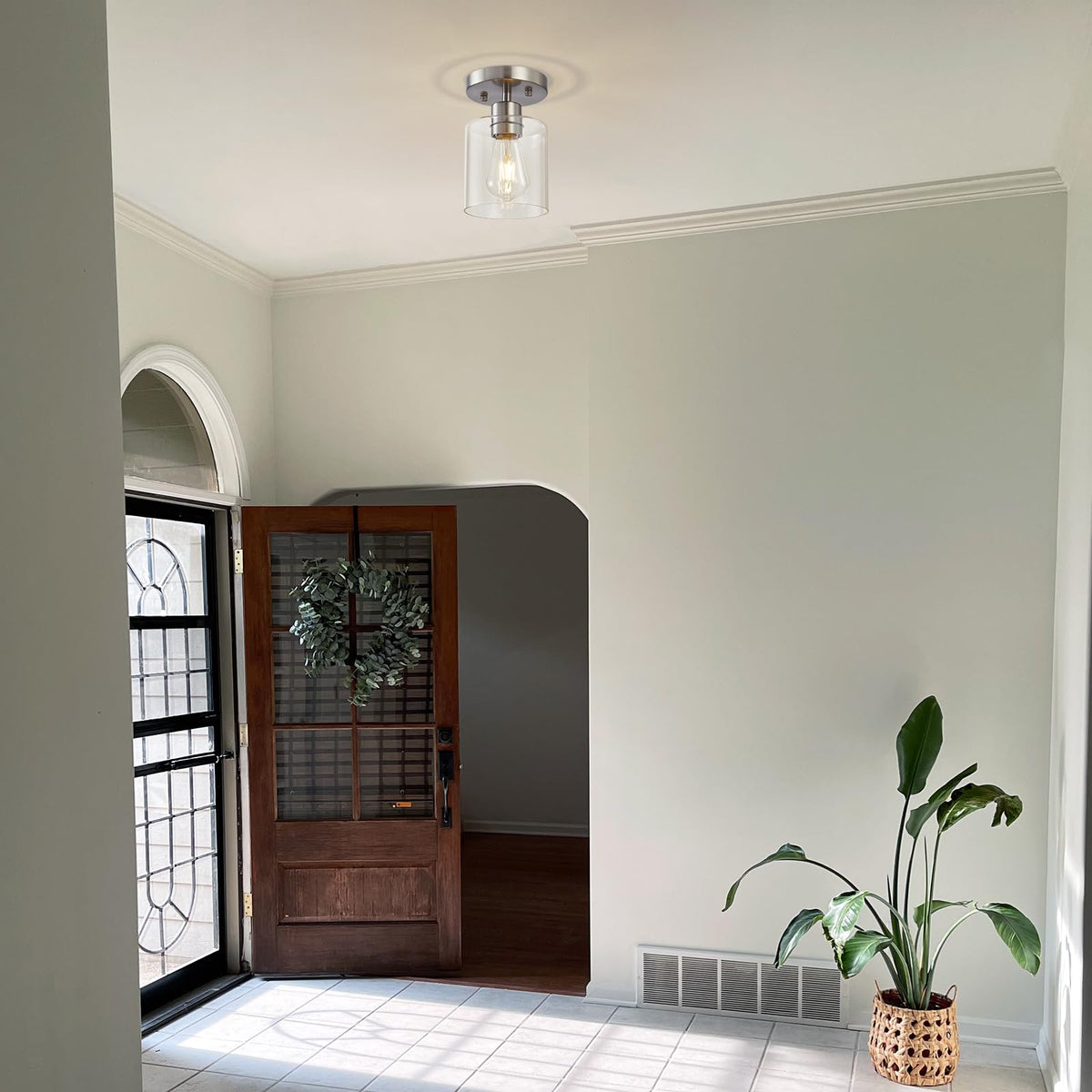Diduio 1 Light Semi Flush Mount Ceiling Light, Brushed Nickel Ceiling Light Fixtures, Modern Light Fixtures Ceiling Mount, Ceili