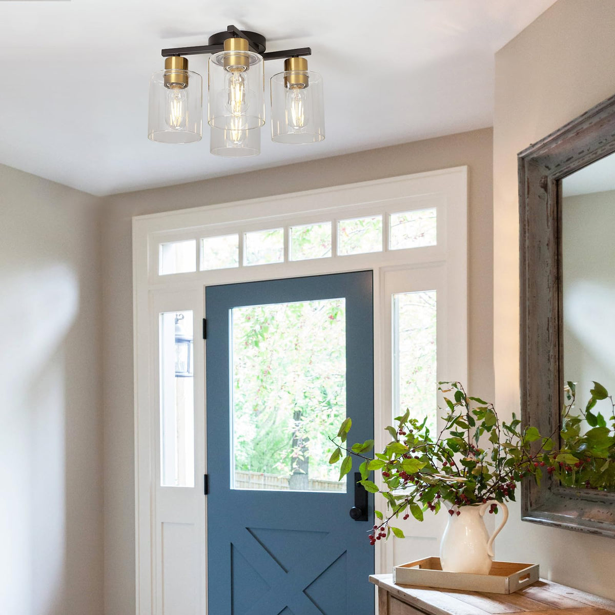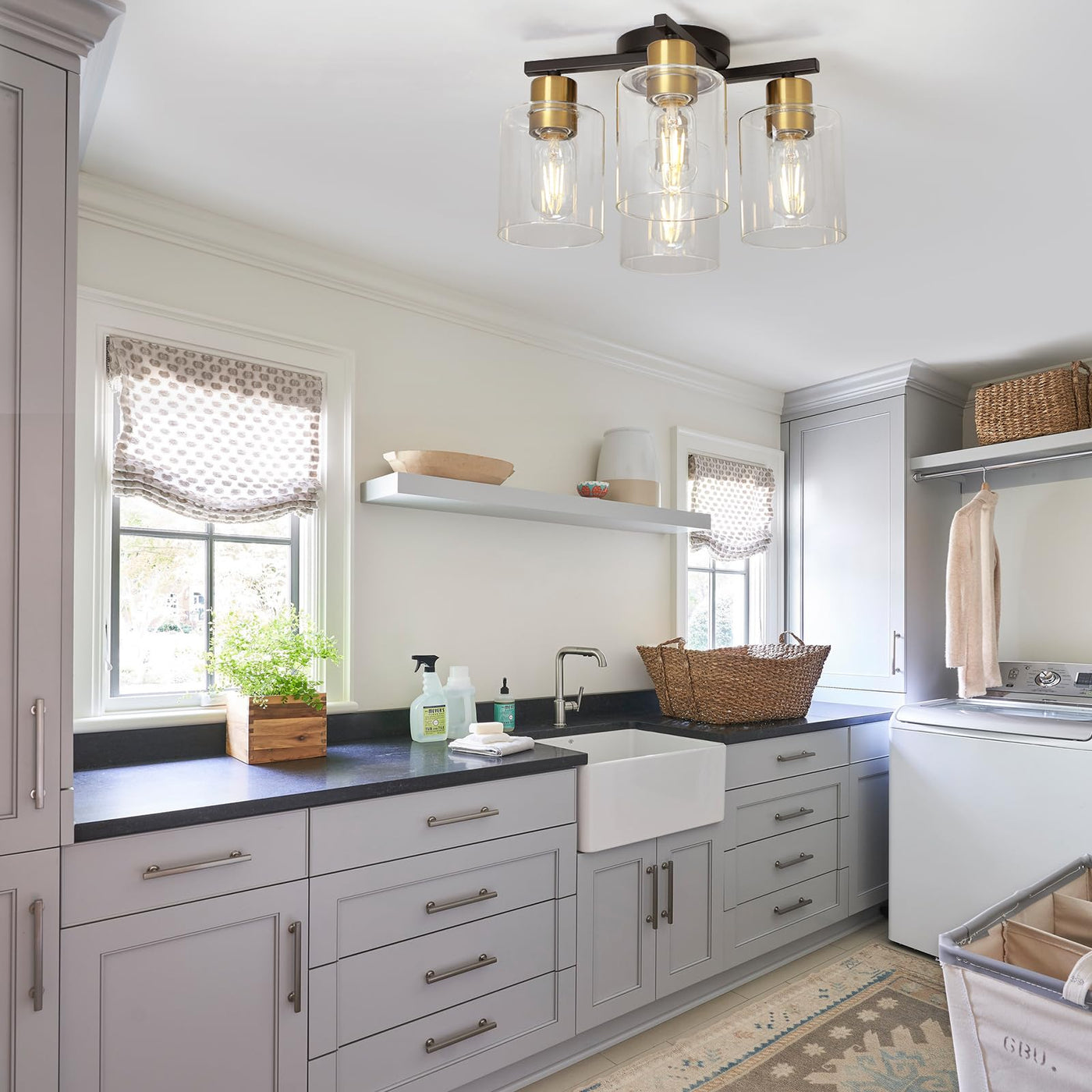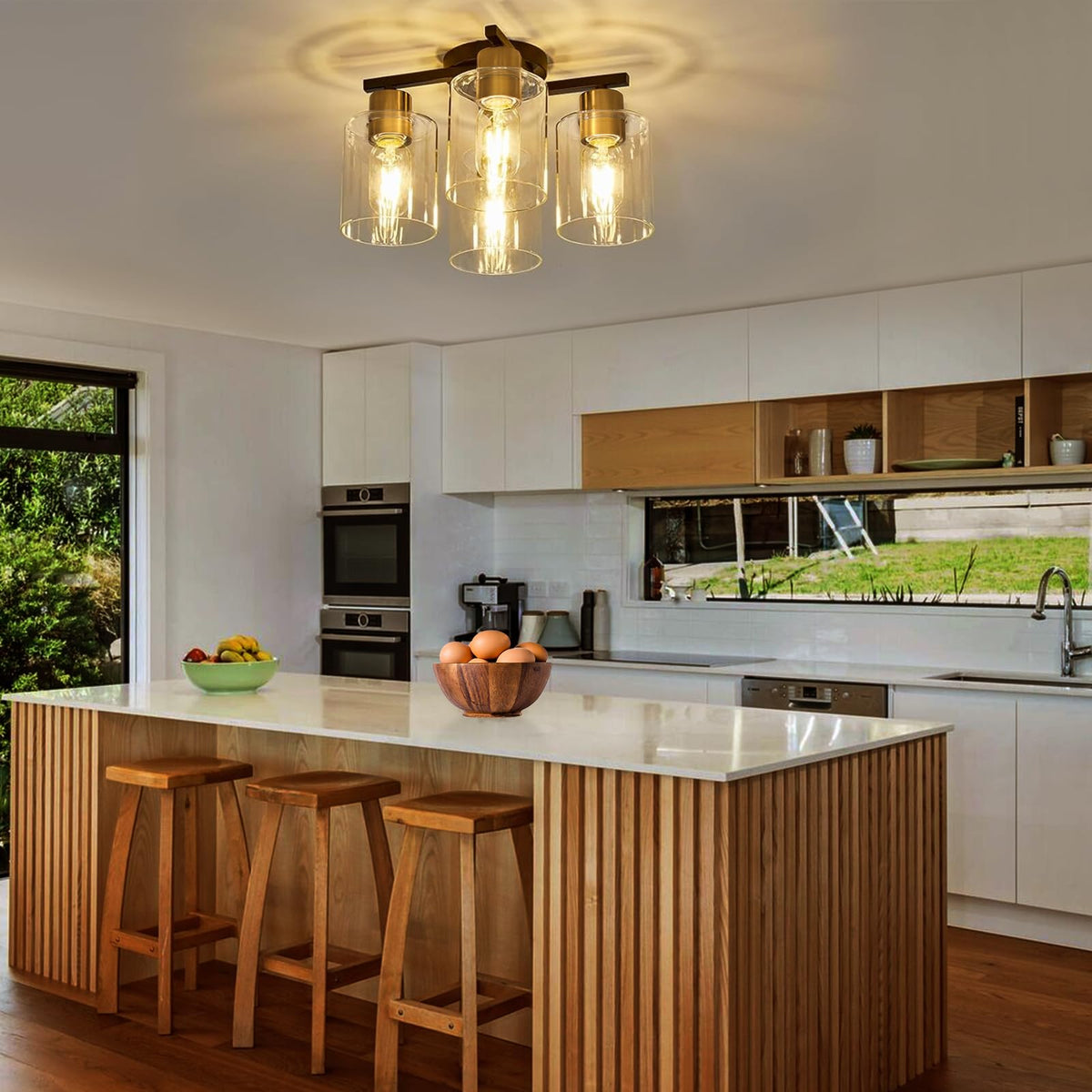 Diduio 4-Light Semi Flush Mount Ceiling Light, Black And Gold Kitchen Lighting Fixtures Ceiling, Farmhouse Ceiling Light With Cl