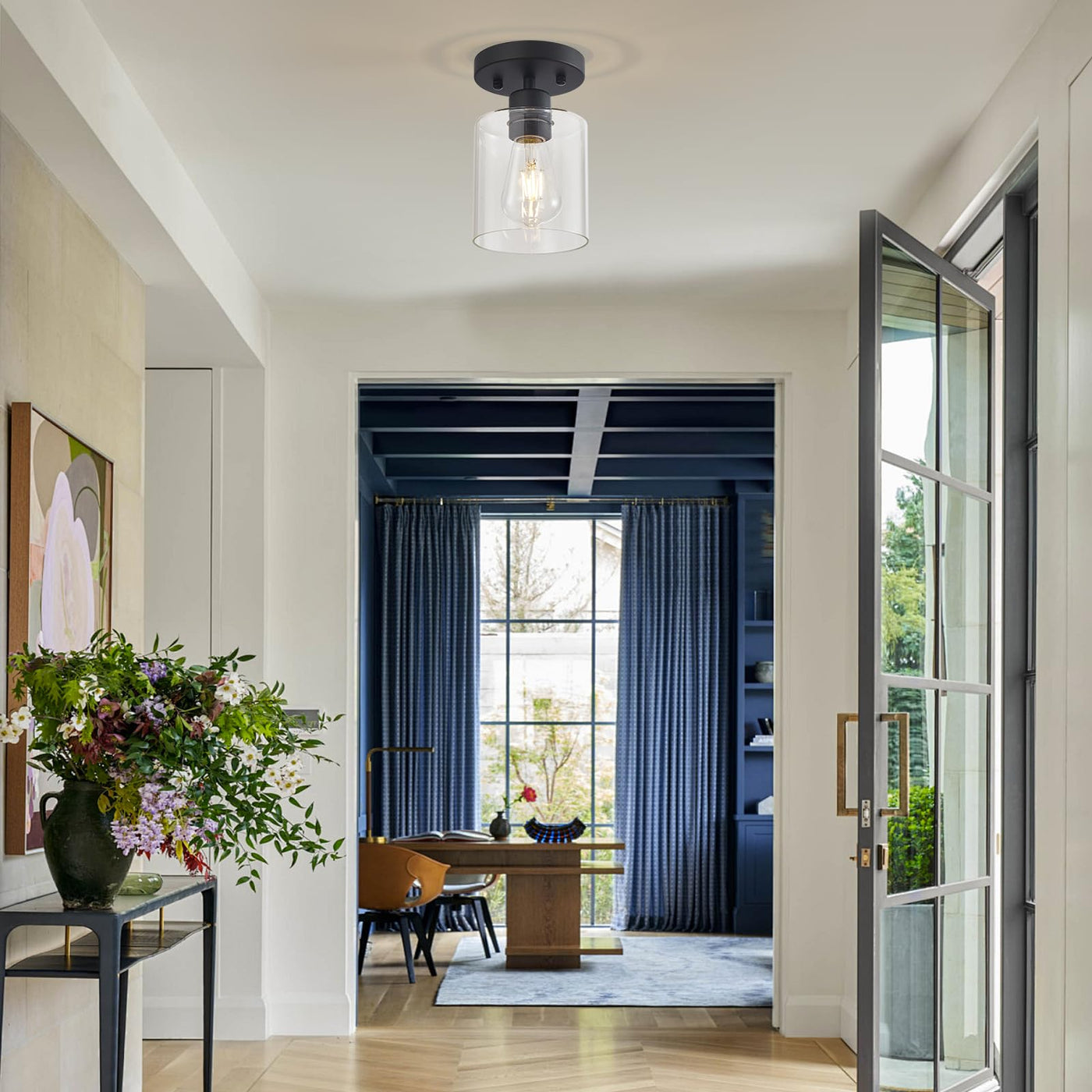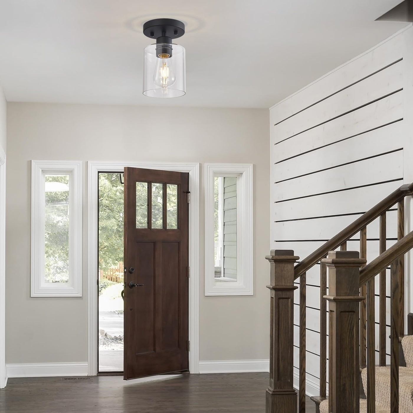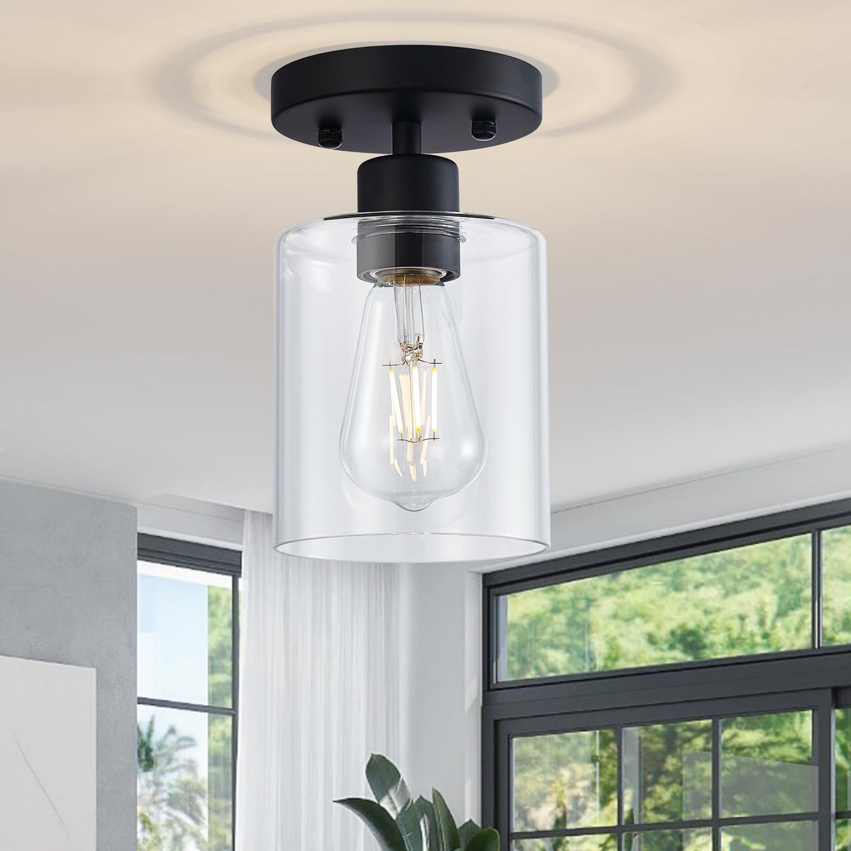 Diduio Black Semi Flush Mount Ceiling Light, 1-Light Ceiling Light Fixtures, Farmhouse Light Fixtures Ceiling Mount, Ceiling Lig