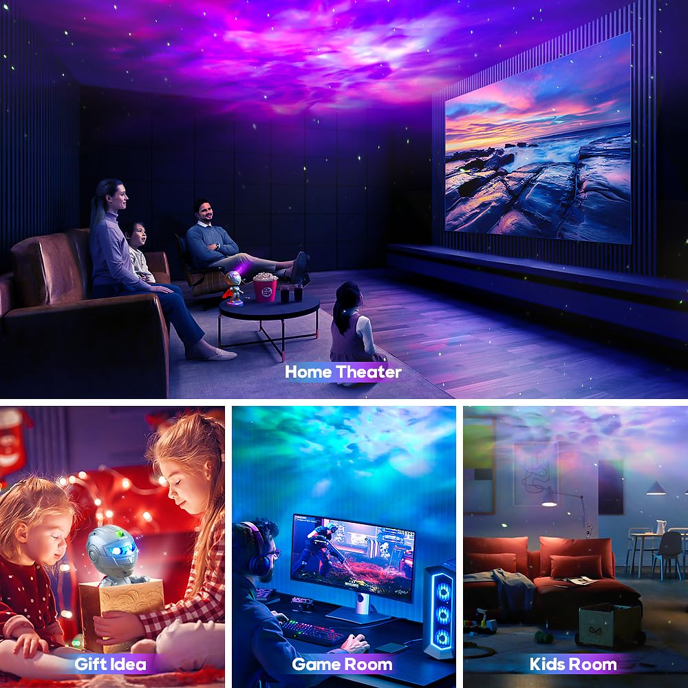 - **Upgraded Star Projection**: Experience 33 captivating light effects combined with twinkling green stars, projecting the serene beauty of the Milky Way onto your walls or ceiling. Perfect for movie nights, date nights, or enhancing your gaming setup.