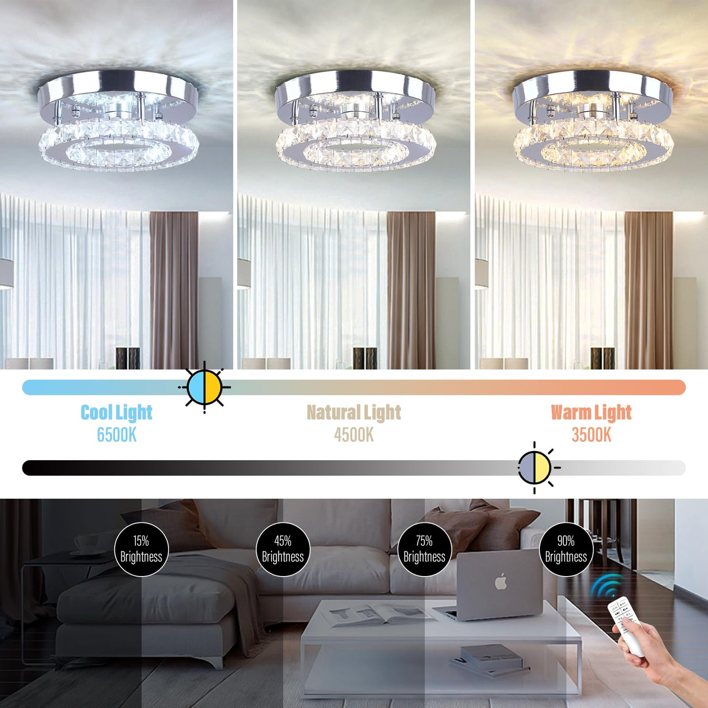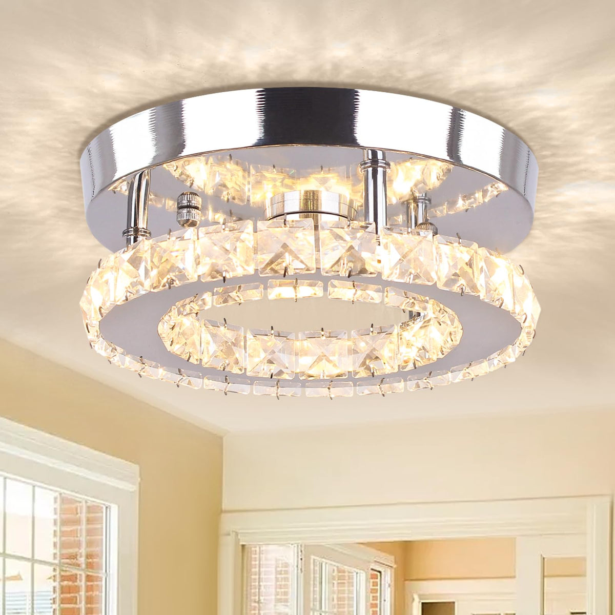 Diisunbihuo Dimmable Mini Crystal Chandelier - Modern Round Led Flush Mount Light For Home