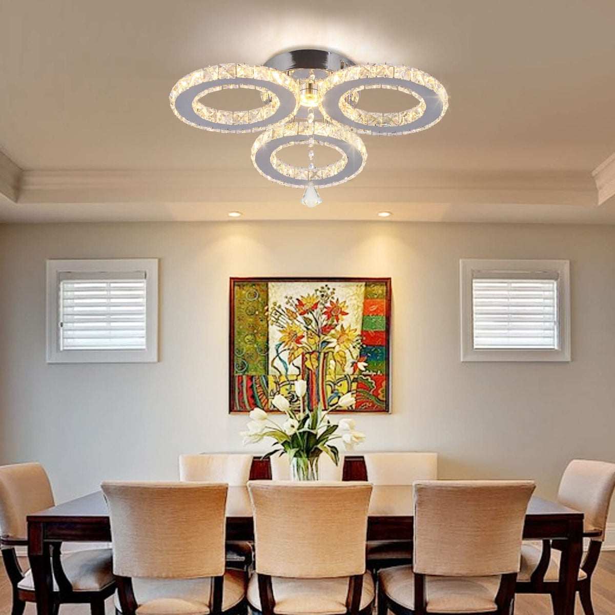 Diisunbihuo Led Crystal Chandelier, 13X3.5" Flush Mount Light, Warm White For Bedroom/Living Room