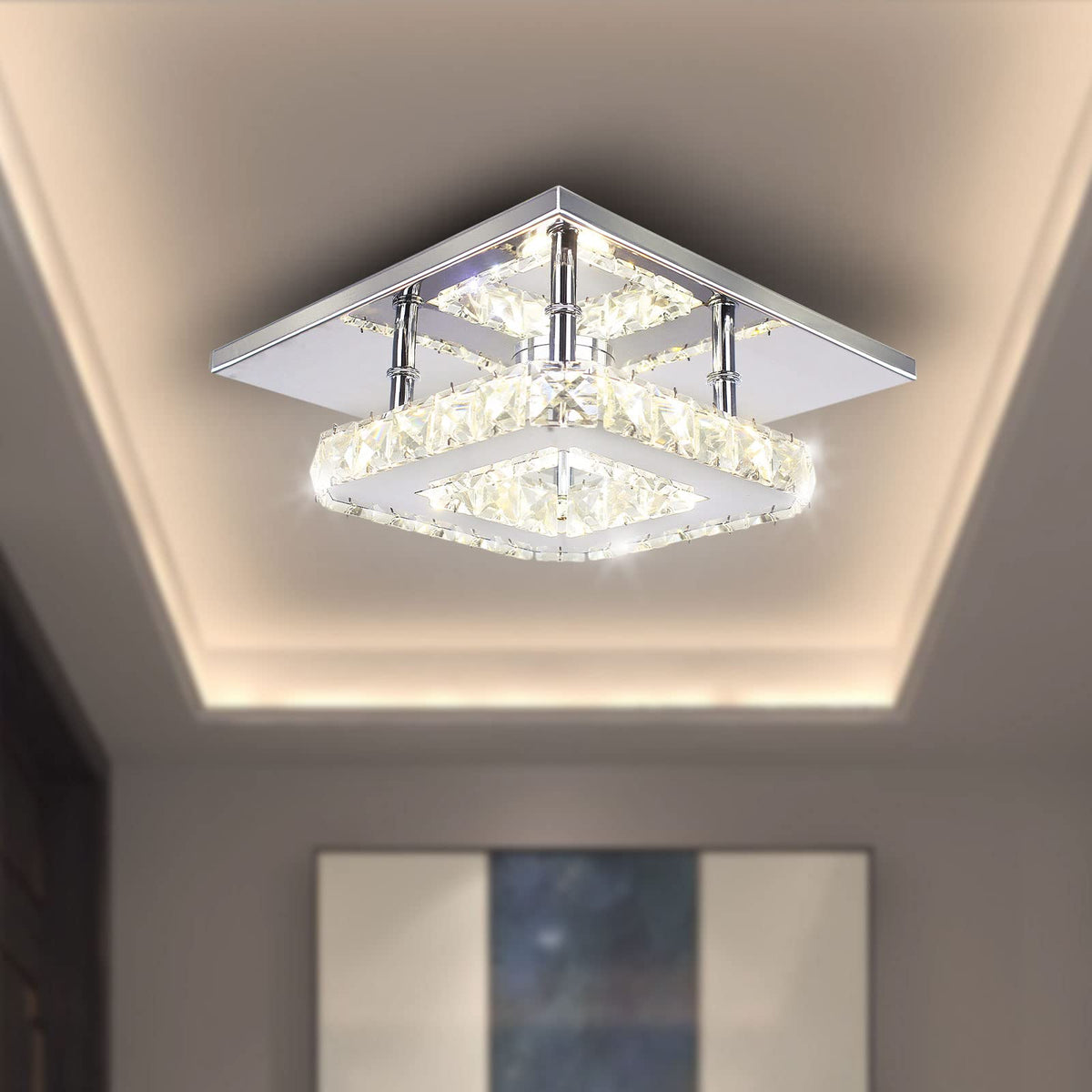 Diisunbihuo Modern Crystal Chandelier 7.9 Inches Led Ceiling Light Mini Square Flush Mount Ceiling Light For Bedrooms Dinning Ro
