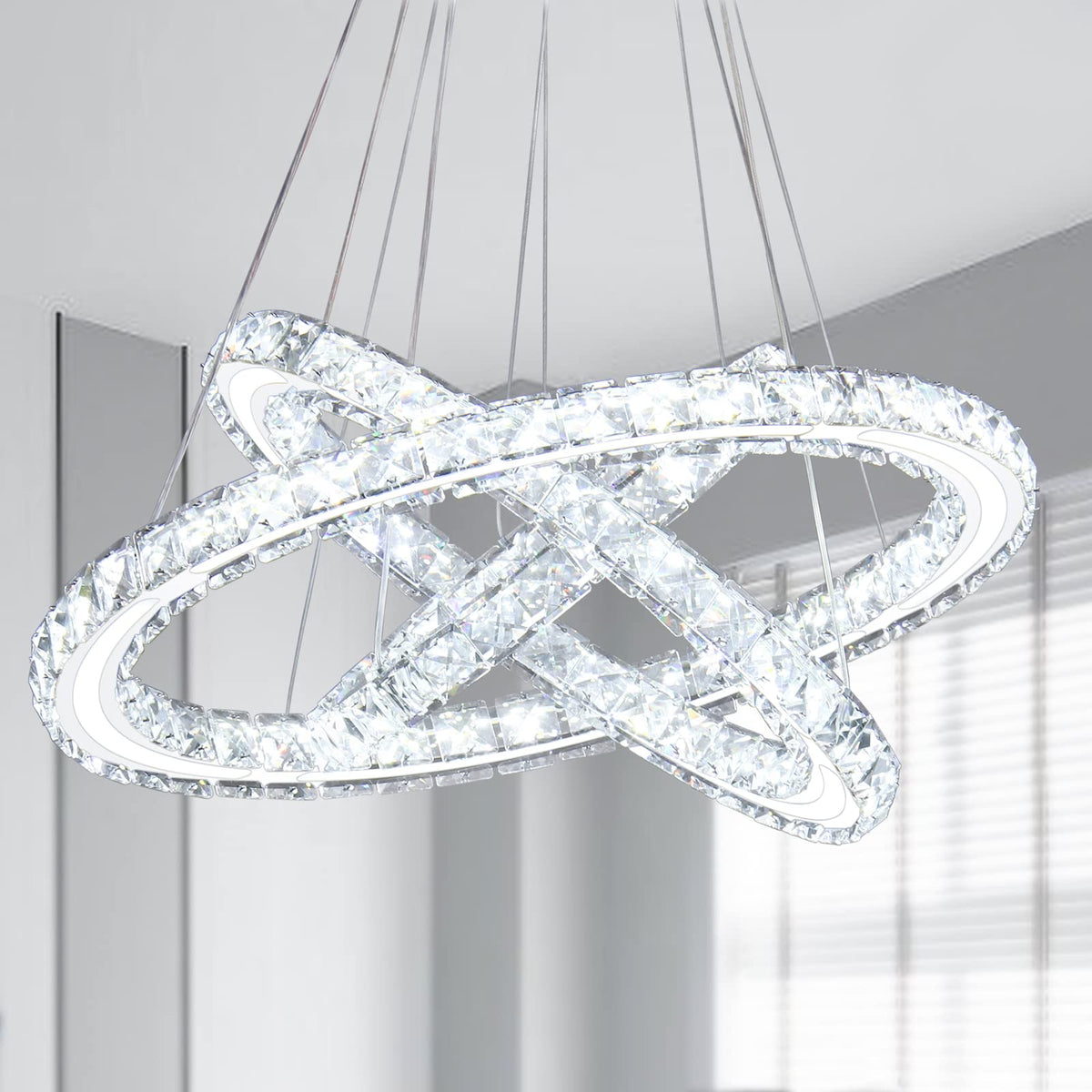 - **Stunning Design**: Featuring a modern aesthetic with crystal rings available in three sizes (30cm, 40cm, and 50cm), this chandelier is not only a source of light but also a statement piece that enhances your interior decor.
