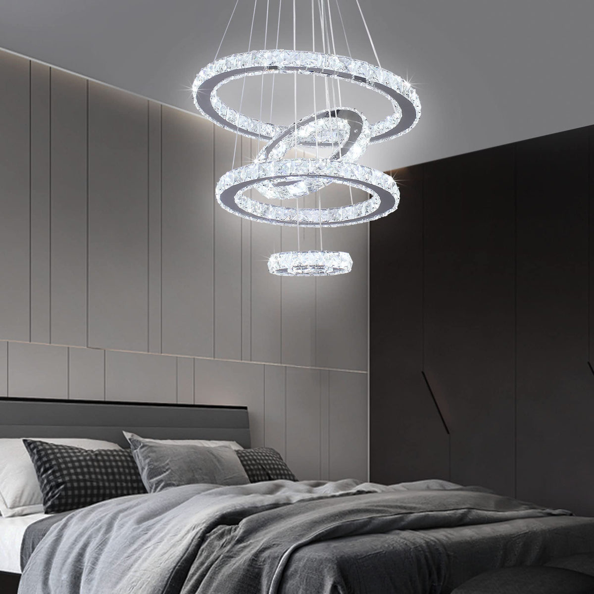 Diisunbihuo Modern Led Ring Crystal Chandelier - Adjustable Stainless Steel Ceiling Light, Multicolor