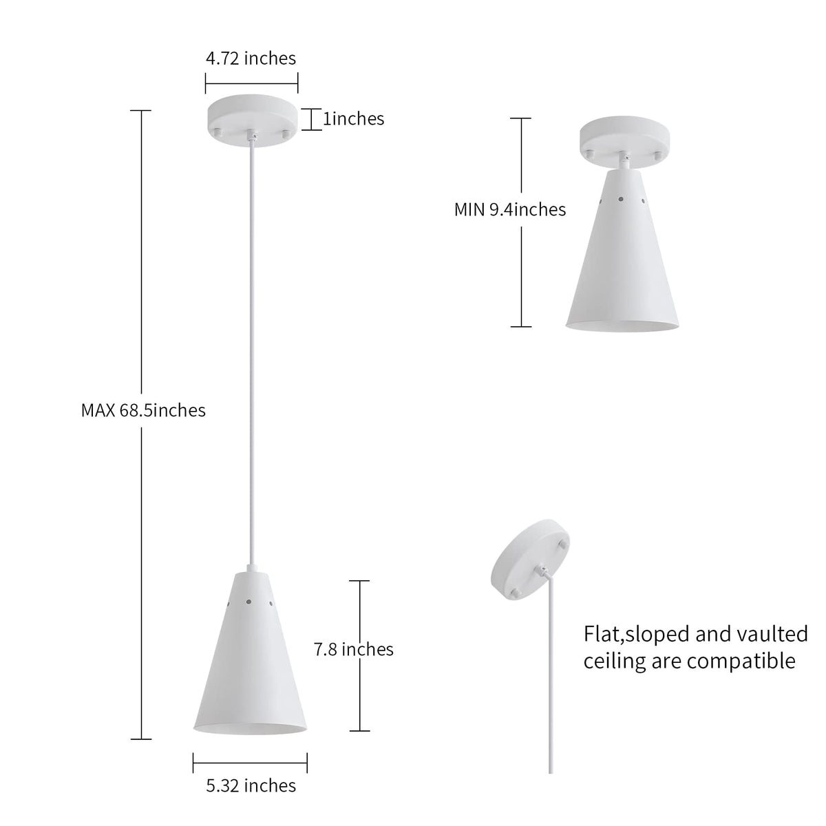 Featuring a fashionable geometric cone design, each lamp is crafted from sturdy metal in a sleek white finish, ensuring durability and a timeless look. Ideal for a variety of settings, this versatile lighting solution is perfect for kitchens, dining rooms, living rooms, and more.