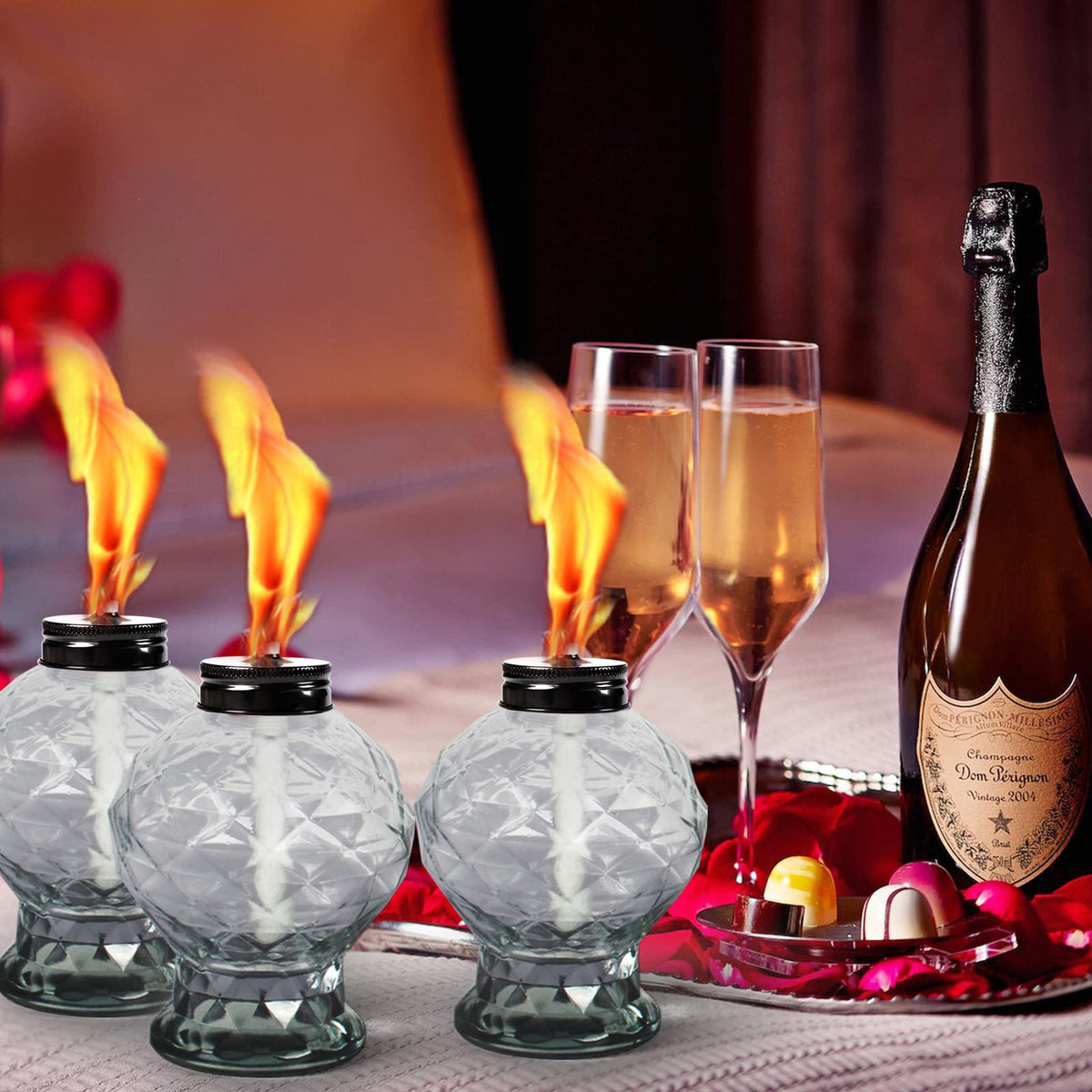 Dikaida 4 Pack Glass Table Torches, Citronella Table Top Torches With Wick And Cap For Outdoor, Refillable Landscape Lanterns Fo