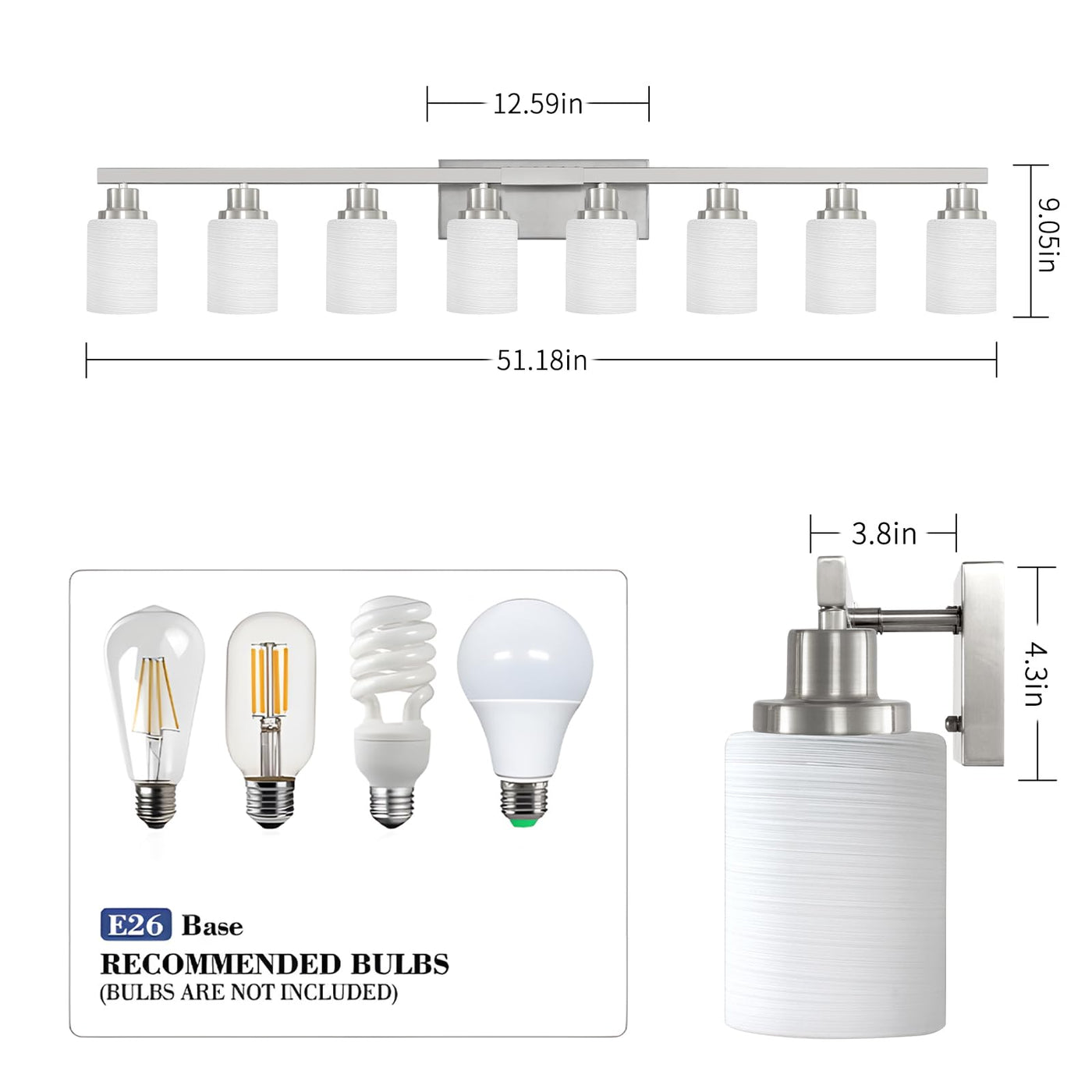 Dikaida 8-Light Bathroom Light Fixtures, 52Inch Nickel Vanity Light With Milky White Glass Shade, Modern Bathroom Wall Lights Ov