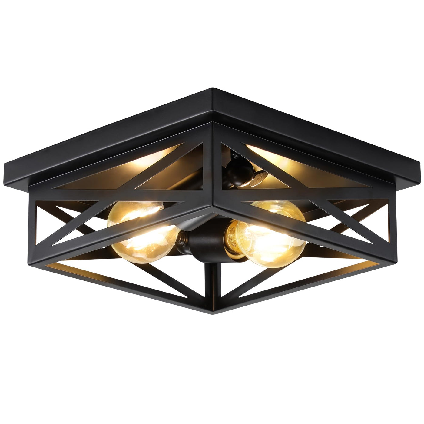 Dikaida Black Rustic Metal Flush Mount Ceiling Light Fixture, 2-Light Industrial Farmhouse Hallway Light Fixtures, Metal Cage Closed To Ceiling Mounted Lights For Bedroom Kitchen Ceiling Lights