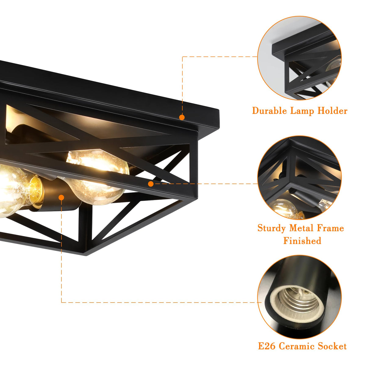 Dikaida Black Rustic Metal Flush Mount Ceiling Light Fixture, 2-Light Industrial Farmhouse Hallway Light Fixtures, Metal Cage Cl