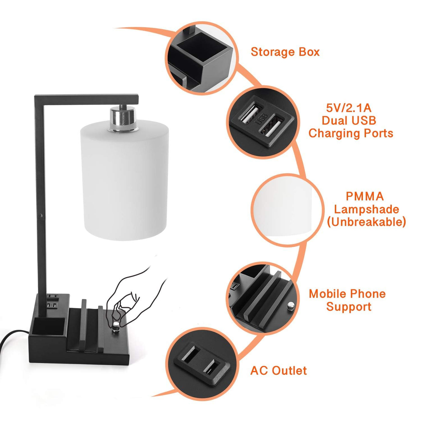 Dimmable Bedside Table Lamp with Dual USB Ports & AC Outlet, Adjustable Brightness & Color Temperature, Phone Holder & Pen Slot