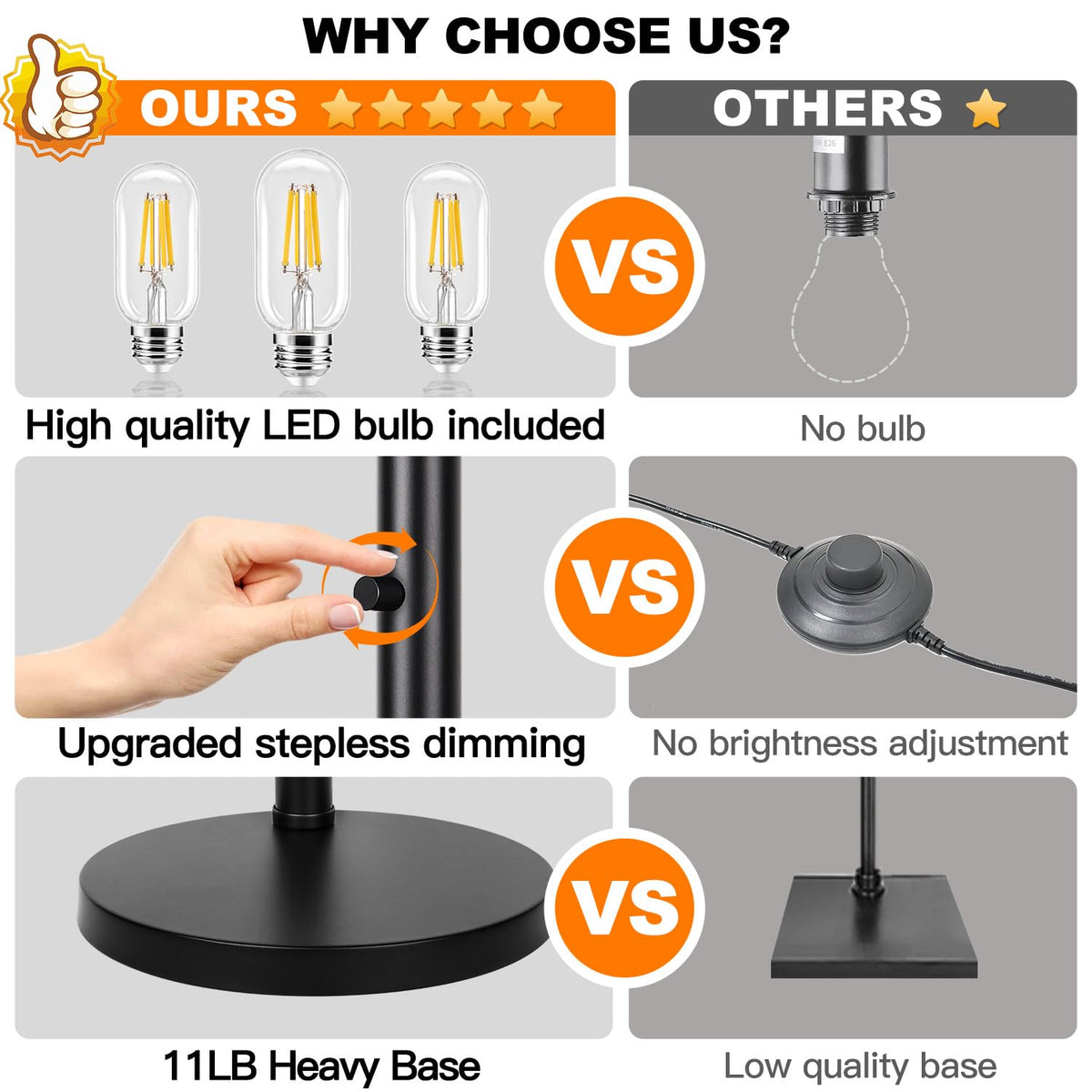 Q: Does the lamp come with light bulbs included?A: Yes, the Dimmable Floor Lamp comes with three 1000 LM LED bulbs included, so you can start using it right out of the box.
