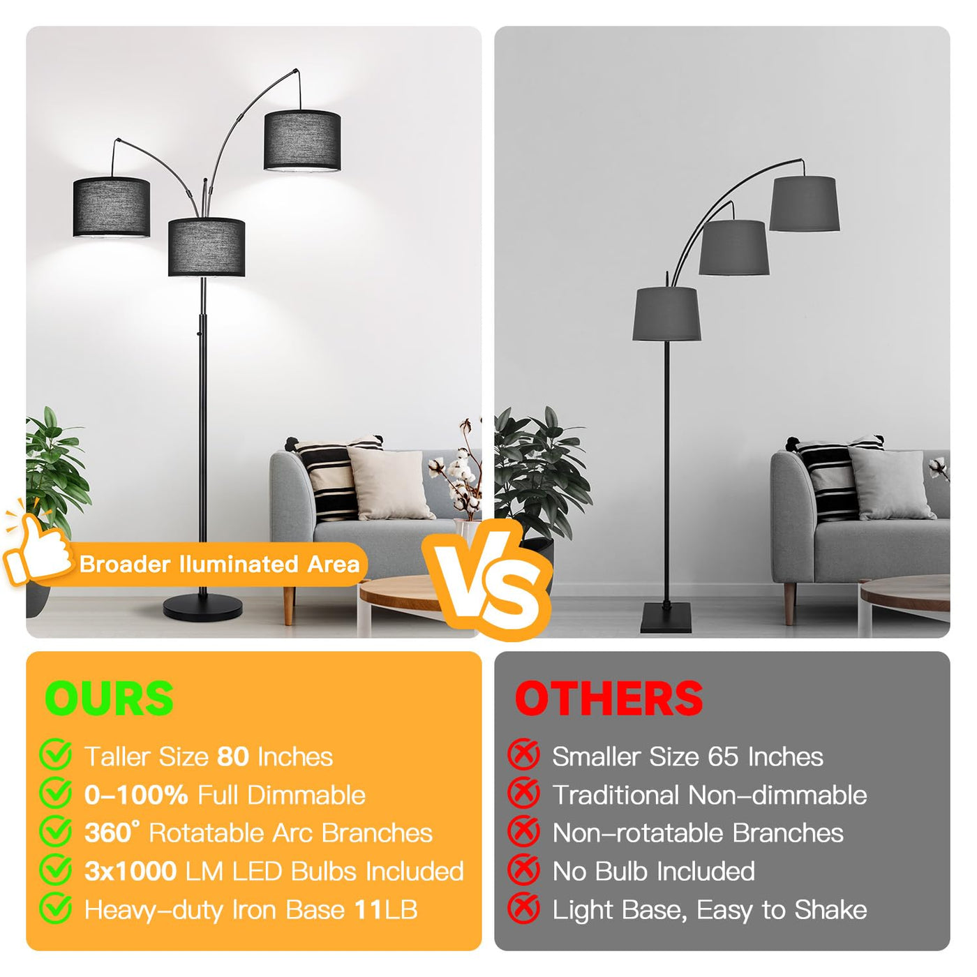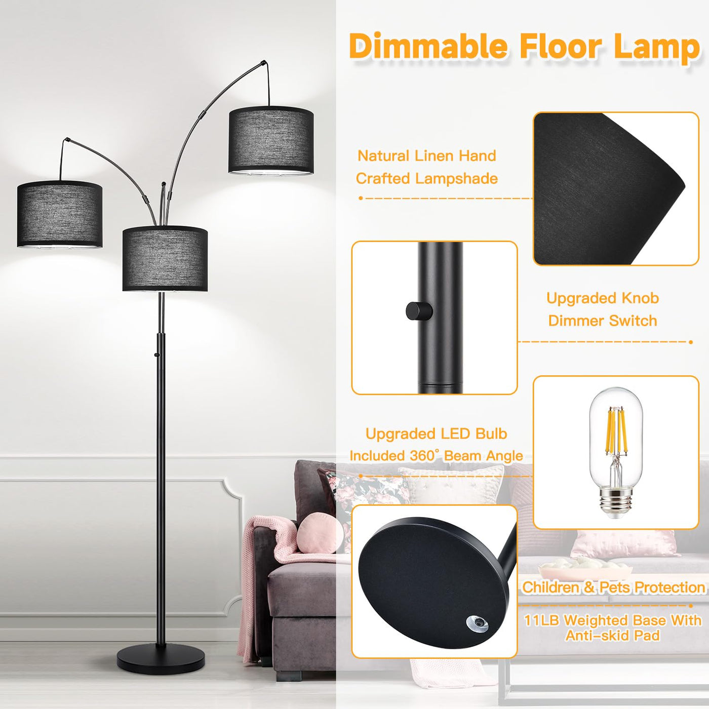 Q: Is the floor lamp safe for homes with pets and children?A: Yes, the floor lamp is designed with a heavy base to prevent tipping, ensuring safety in busy households with pets or children.