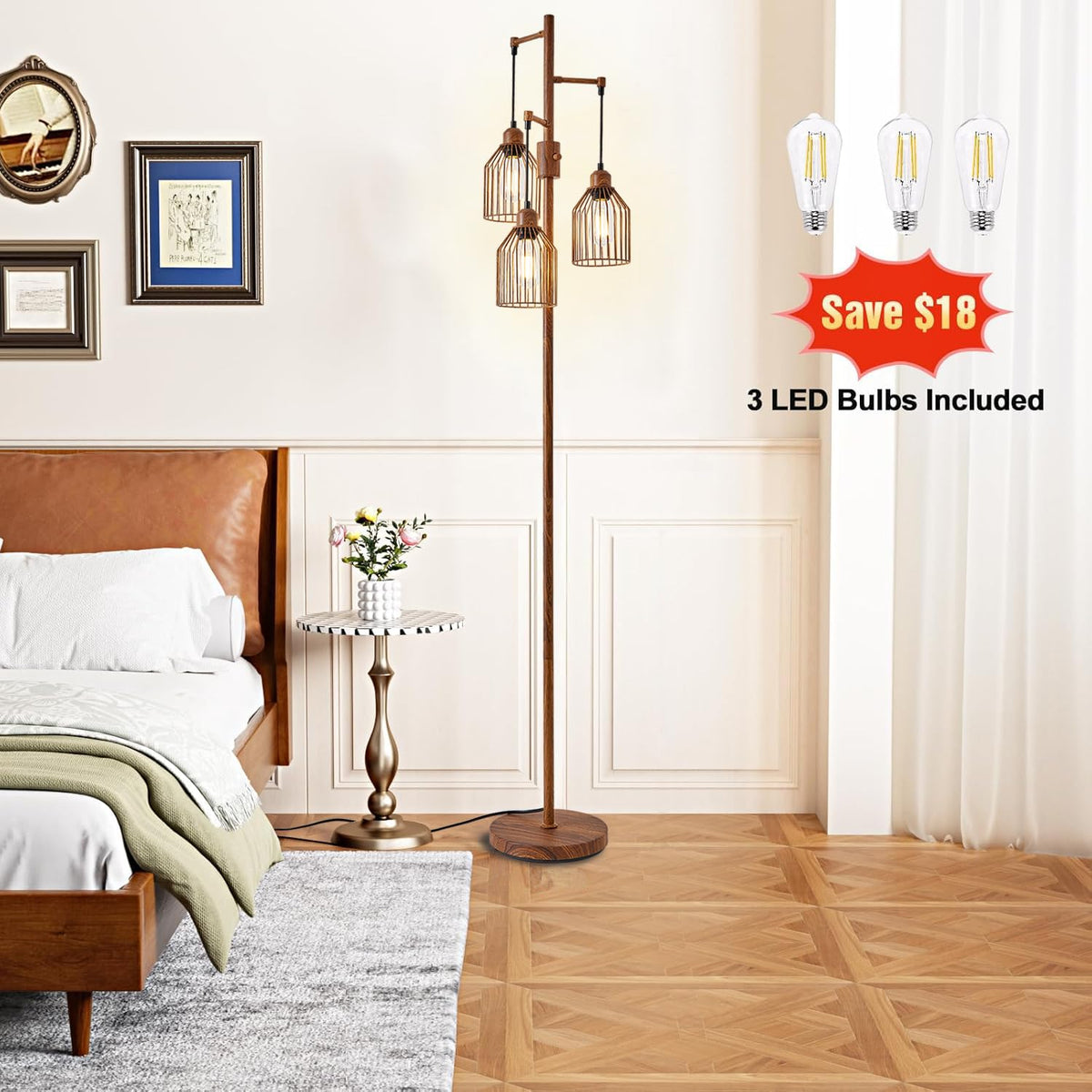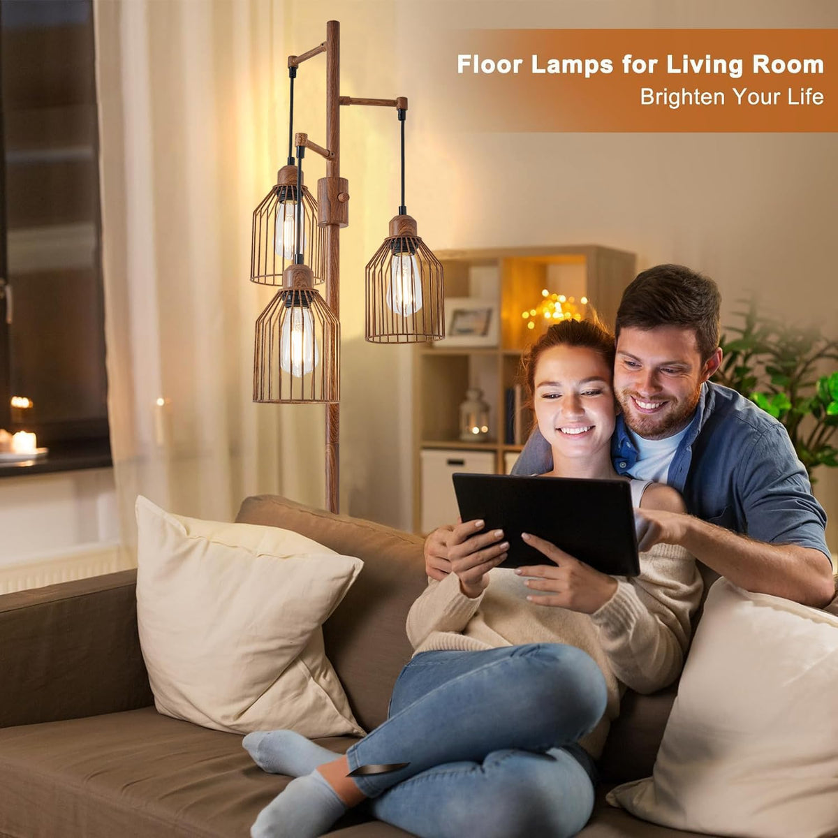 This Farmhouse Lamps Floor Features 3 Heads, Charming And Unique, Allows You To Direct Light Exactly Space Without Luminous Angle.