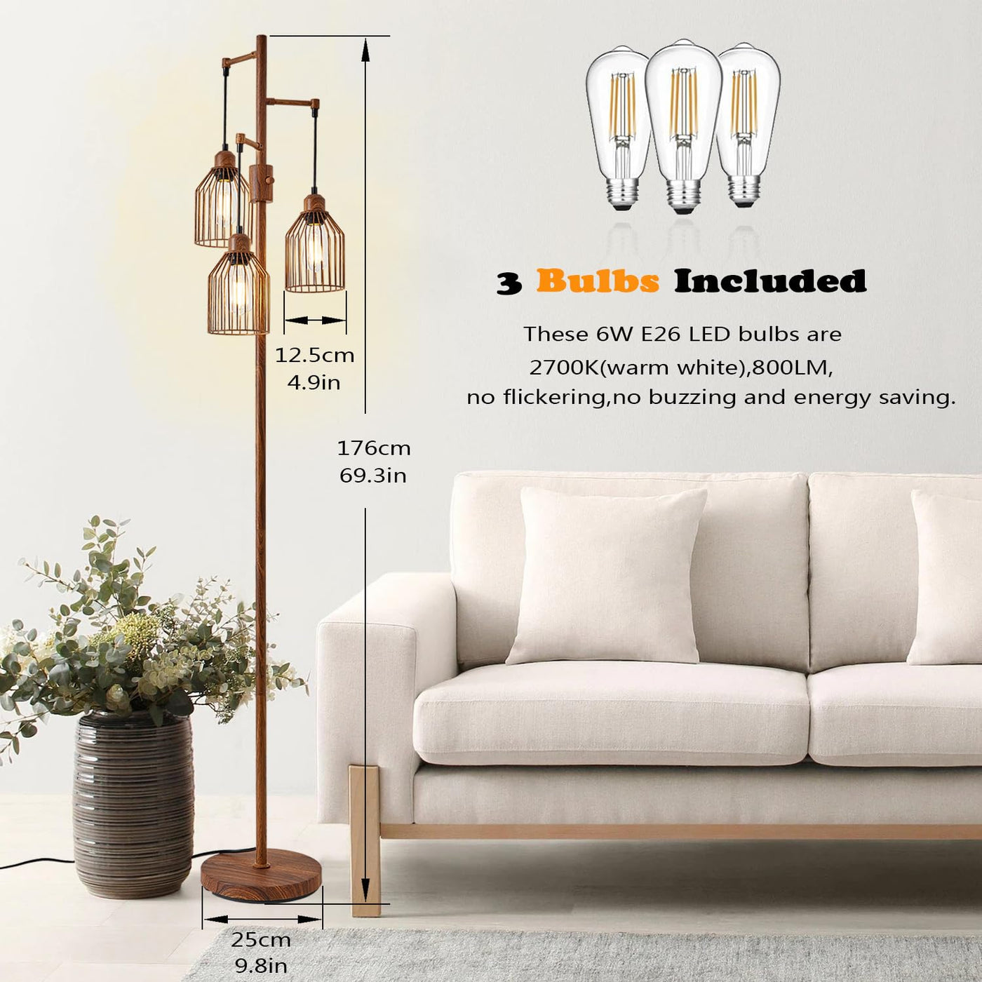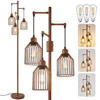 Dimmable Floor Lamp For Living Room, Farmhouse Floor Lamps With Elegant Hanging Cage, 3 X Led Edison Bulbs Included, 68.5'' Indu