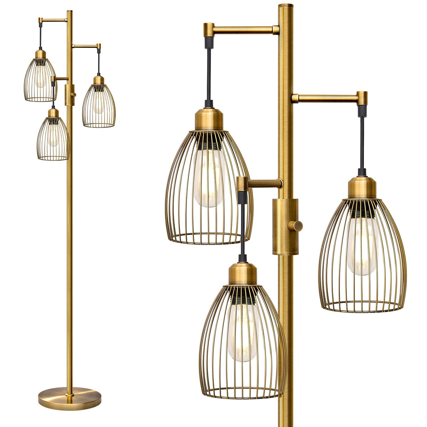 Dimmable Floor Lamp, Industrial Floor Lamps For Living Room, Antique Brass Tree Lamp Standing Lamp Tall Lamps With 3 Elegant Tea