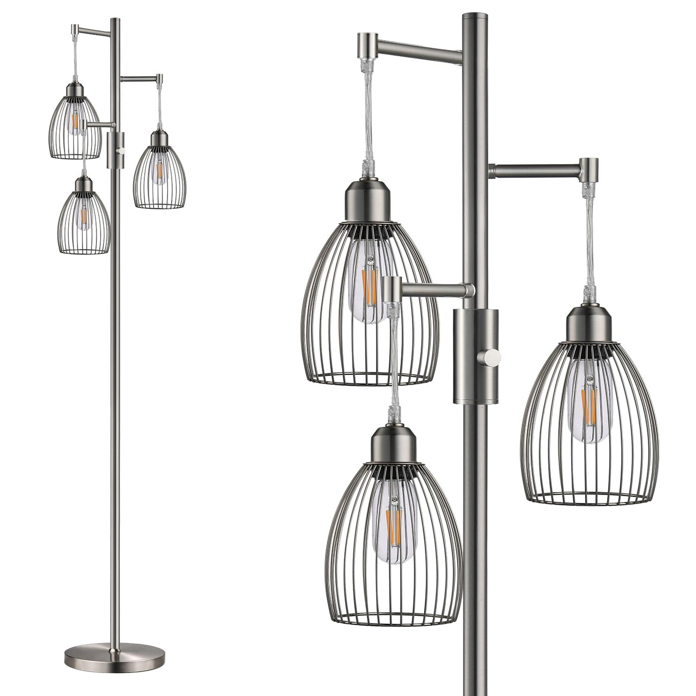 Dimmable Floor Lamp, Industrial Floor Lamps For Living Room, Brushed Nickel Tree Lamp Standing Lamp Tall Lamps With 3 Elegant Te