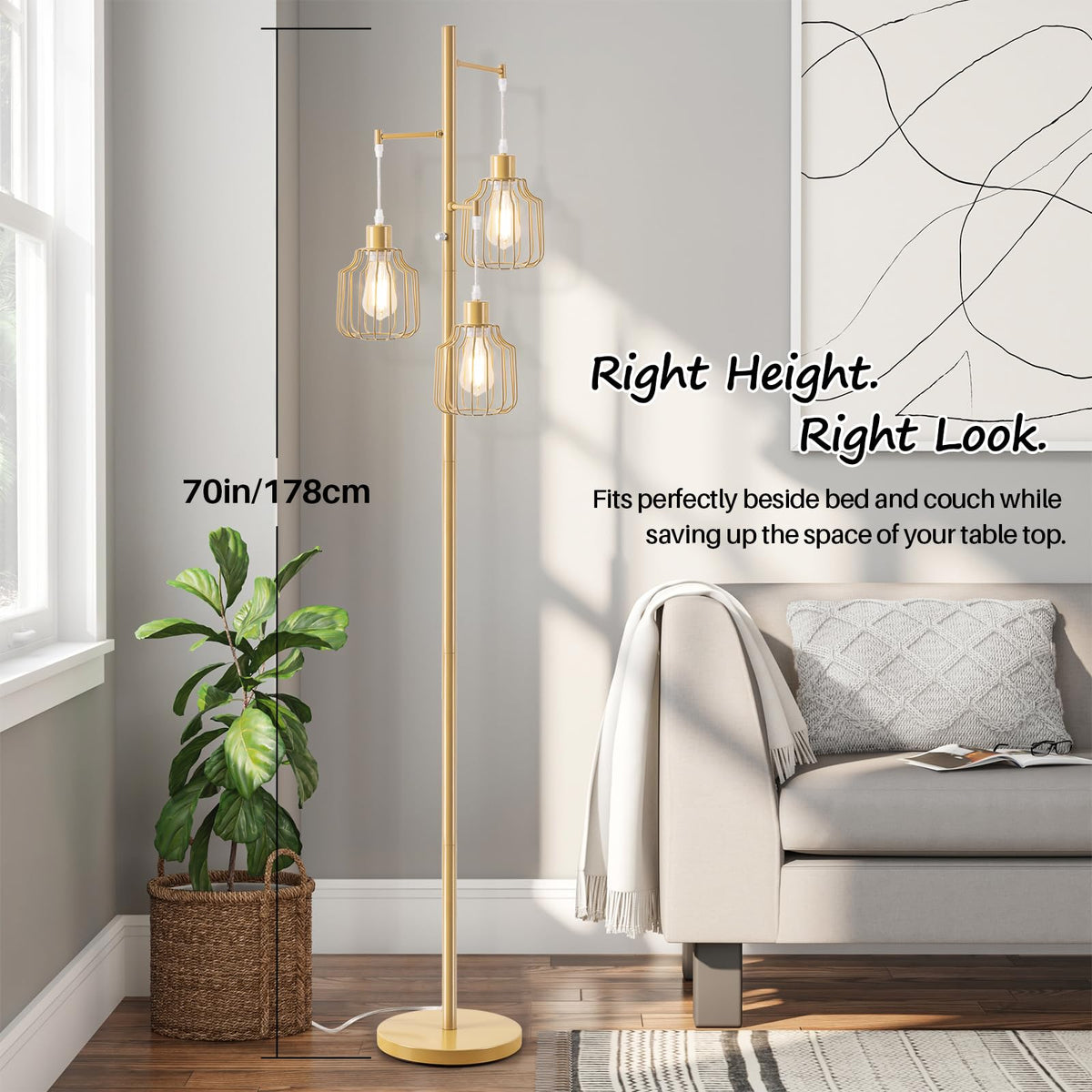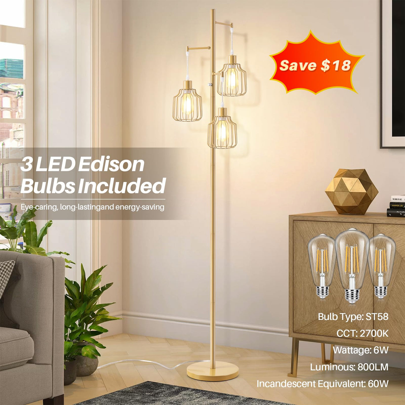 A Stunning Industrial Floor Lamp That Will Blend Right In With Your Home Decor &Nbsp; Practical Dimming Function An Upgrade Made On This Floor Lamp You Will Definitely Find Useful Is The Built-In Dimmer Switch On The Lamp Pole. With Available Brightness Level From 0%-10% You Are Able To Set The Mood Of Your Room Just How You Want. Either Its Dim Light To Accompany You To Sleep, Medium Light For Reading Or Bright Light For Working. &Nbsp; Farmhouse Style Floor Lamp The See-Through Cage Shades Optimize Lighting And Instantly Enhance The Farmhouse Touch Of Your Home Decor. The Floor Lamps Built Only With Premium Materials And Sturdy Enough To Last For Years. Perfect Tall Standing Floor Lamp For Bedroom, Living Room And Office. &Nbsp; 3 Led Bulbs Included Three Vintage Led Edison Bulbs Are Included In The Package To Save You The Time And Energy Of Finding Compatible Light Bulbs. &Nbsp; Features Of Floor Lamp Material: Metal Color: Light Gold Voltage: 120Vac Wattage Support: 60W Max Per Light Control Method: Rotary Dimmer Switch Height: 68In Dimmable: Yes &Nbsp; Features Of Included Led Bulbs Voltage: 120Vac Wattage: 7W (Equivalent To 60W Incandescent Bulbs) Brightness: 800 Lumens Color Temperature: 2700K (Warm White) Beam Angle: 360 Lifespan: 25,000 Hours